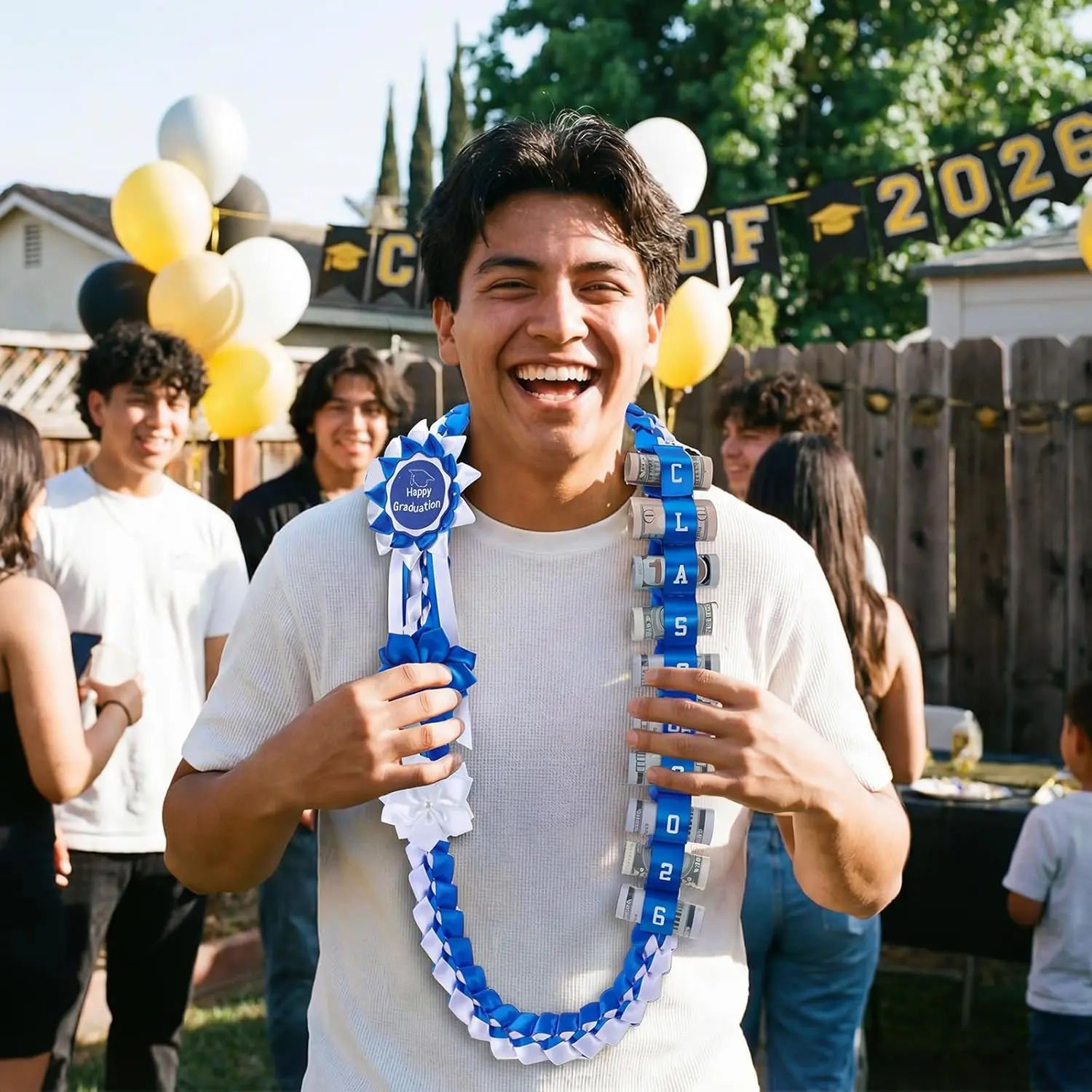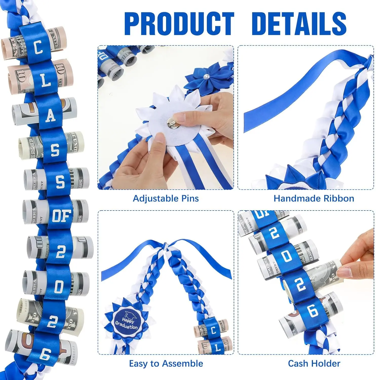 ·Celebrate with Style Exclusive: class of 2026 graduates, this Graduation Money Lei with Cash Holder offers a chic and fashionable alternative to traditional gifts; Its classic blue and white color scheme embodies academic achievement and promises a bright future, making it a memorable gift option
