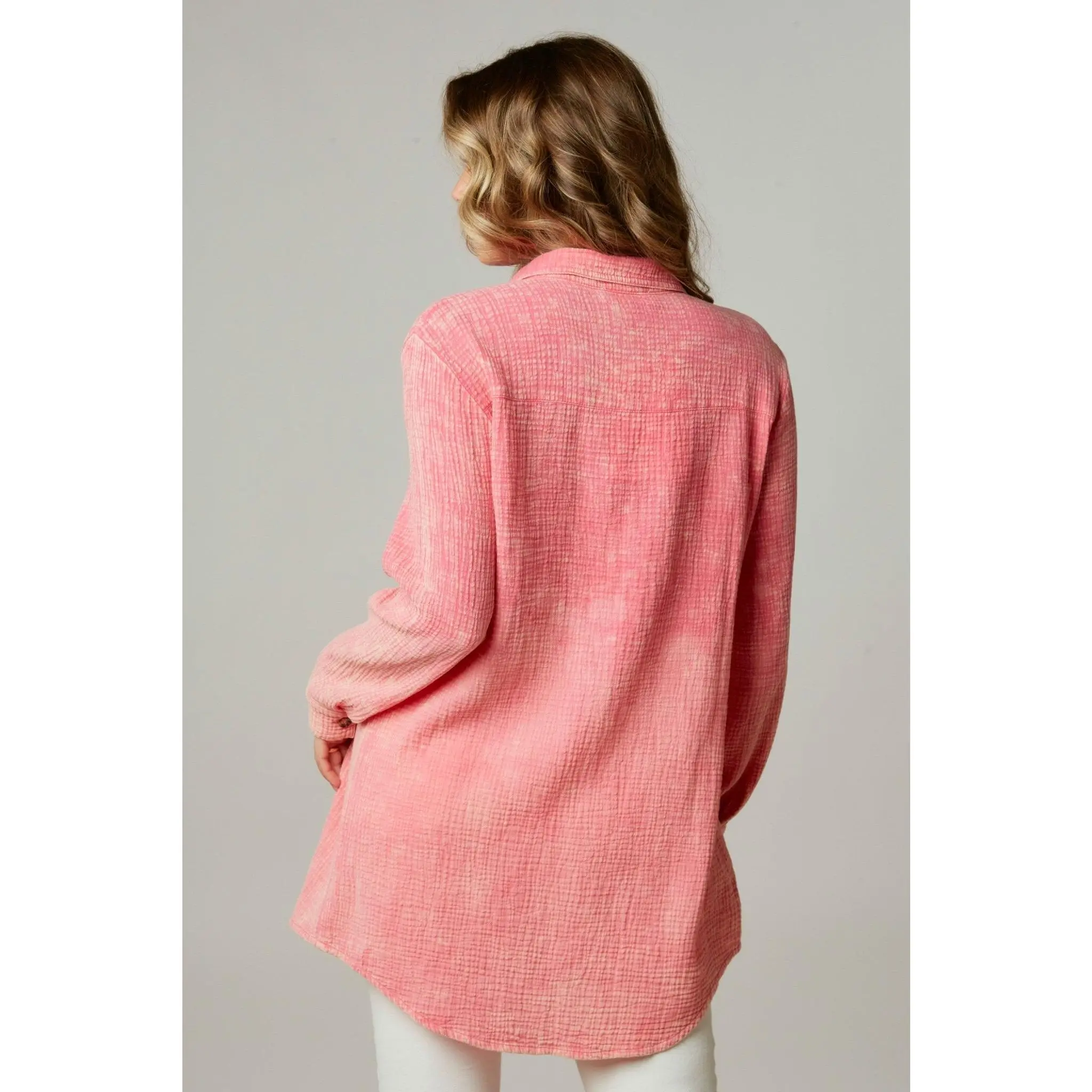 Elevate your everyday style with this textured long‑sleeve button‑up top, designed for a relaxed yet refined look. Crafted in a soft blush‑pink hue, it features a subtle woven texture, dual chest pockets, and a laid‑back fit that drapes beautifully.
