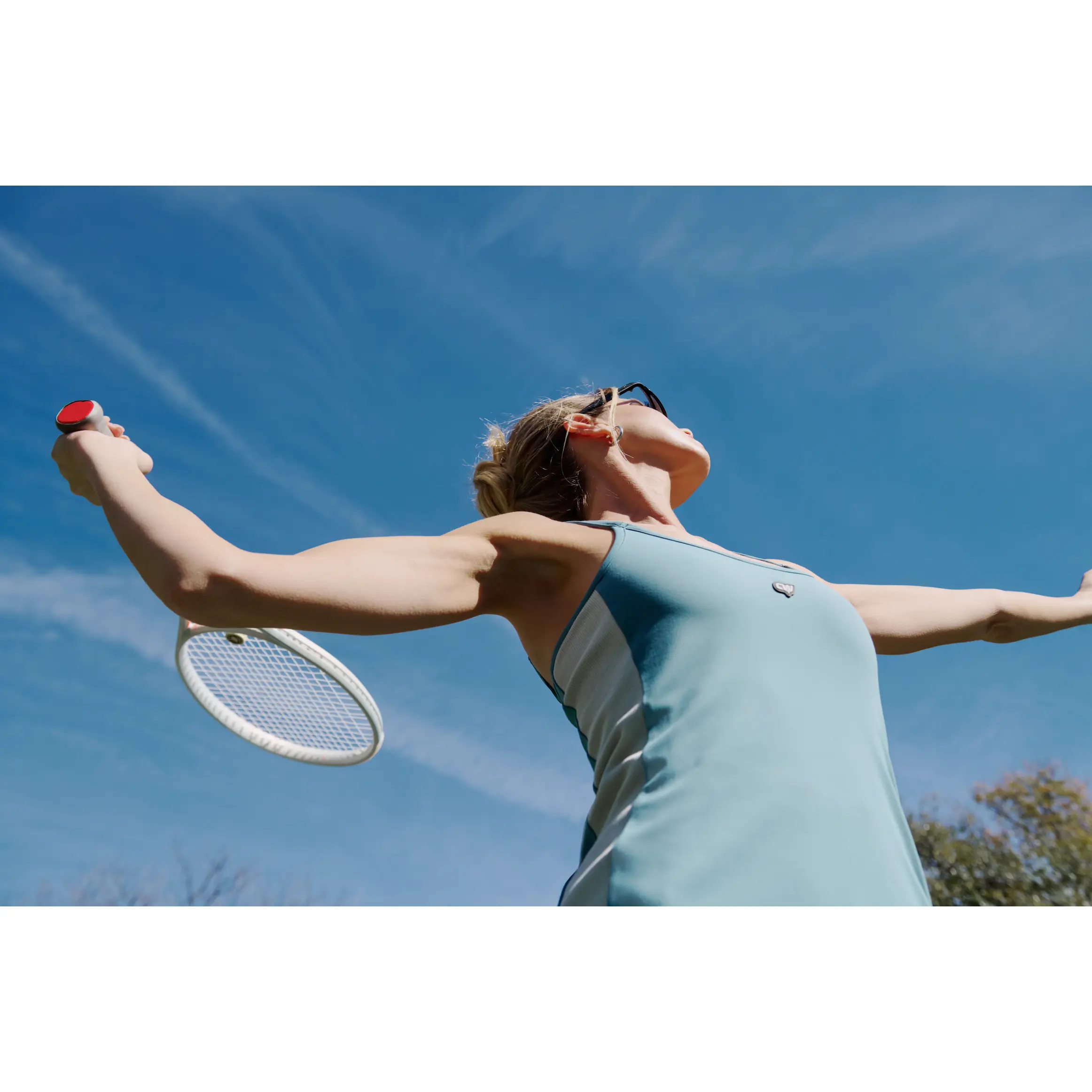 A double-strap detail adds subtle dimension, while a built-in bra and integrated shorts make it fully match-ready. Crafted from our signature brushed knit, it delivers the same second-skin feel carried throughout the collection, soft against the body, sculpted in motion.