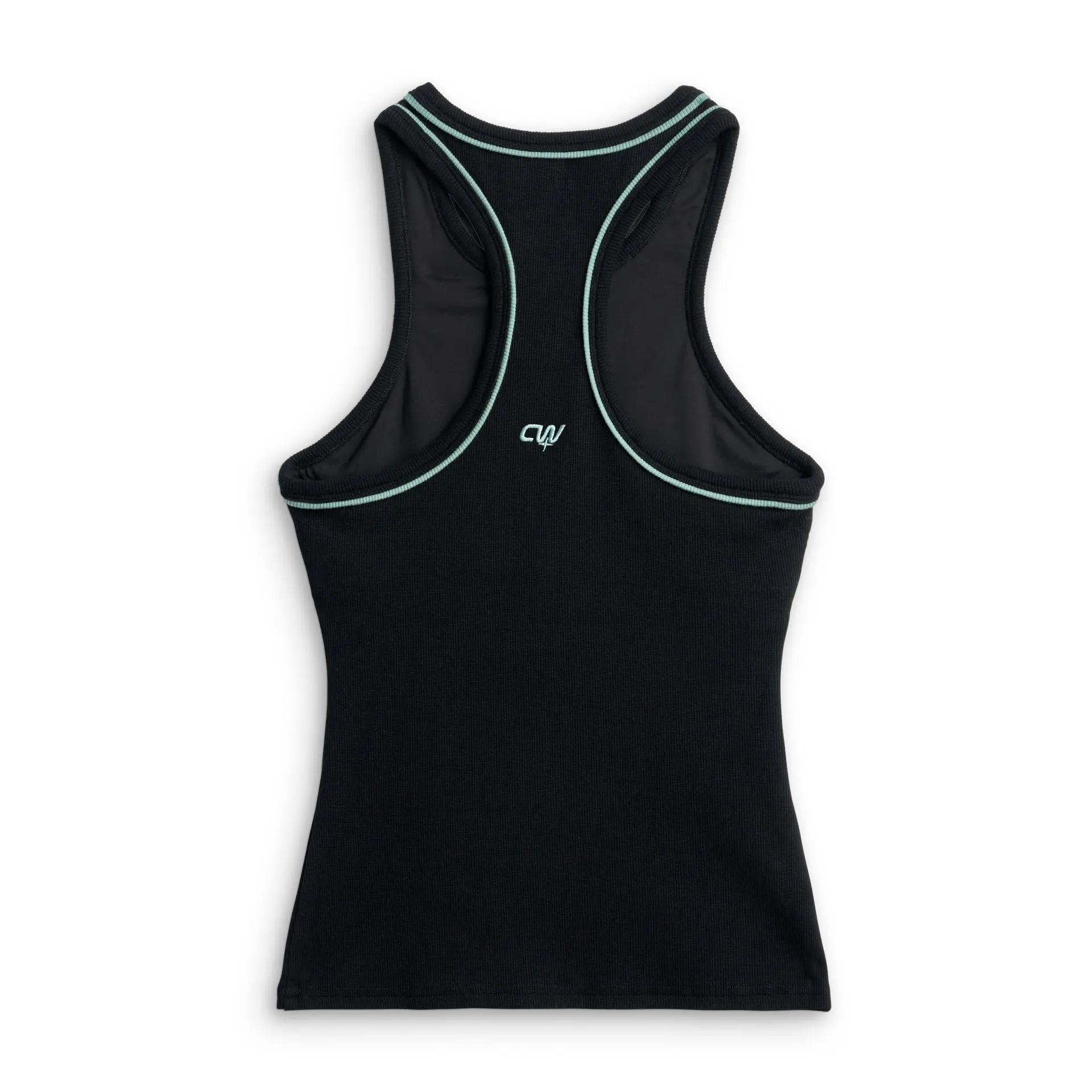 Part of the CW Capsule, this lightweight rib racerback features a built-in bra that delivers sculpted support with a clean, close fit. It feels like an effortless staple but performs where it counts.