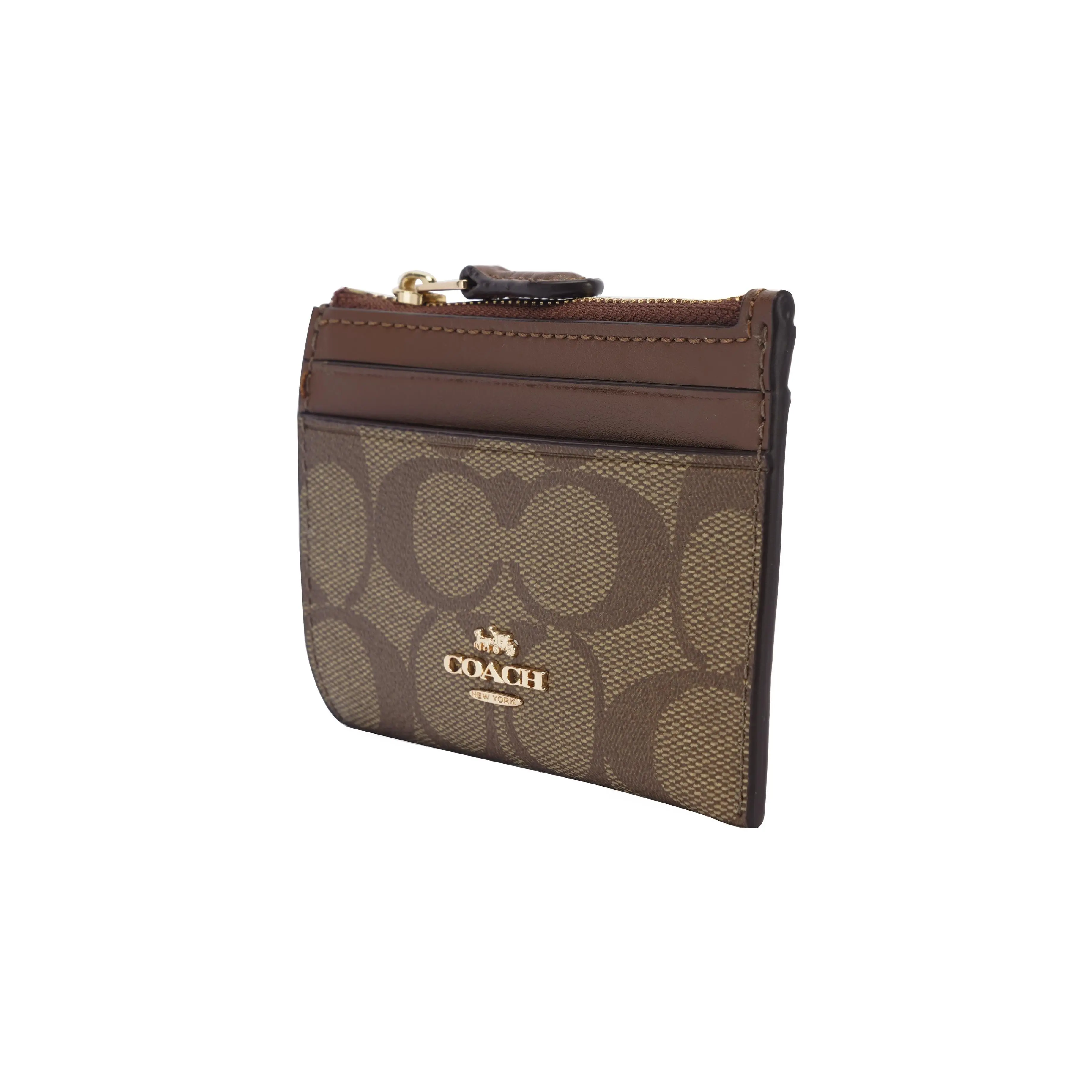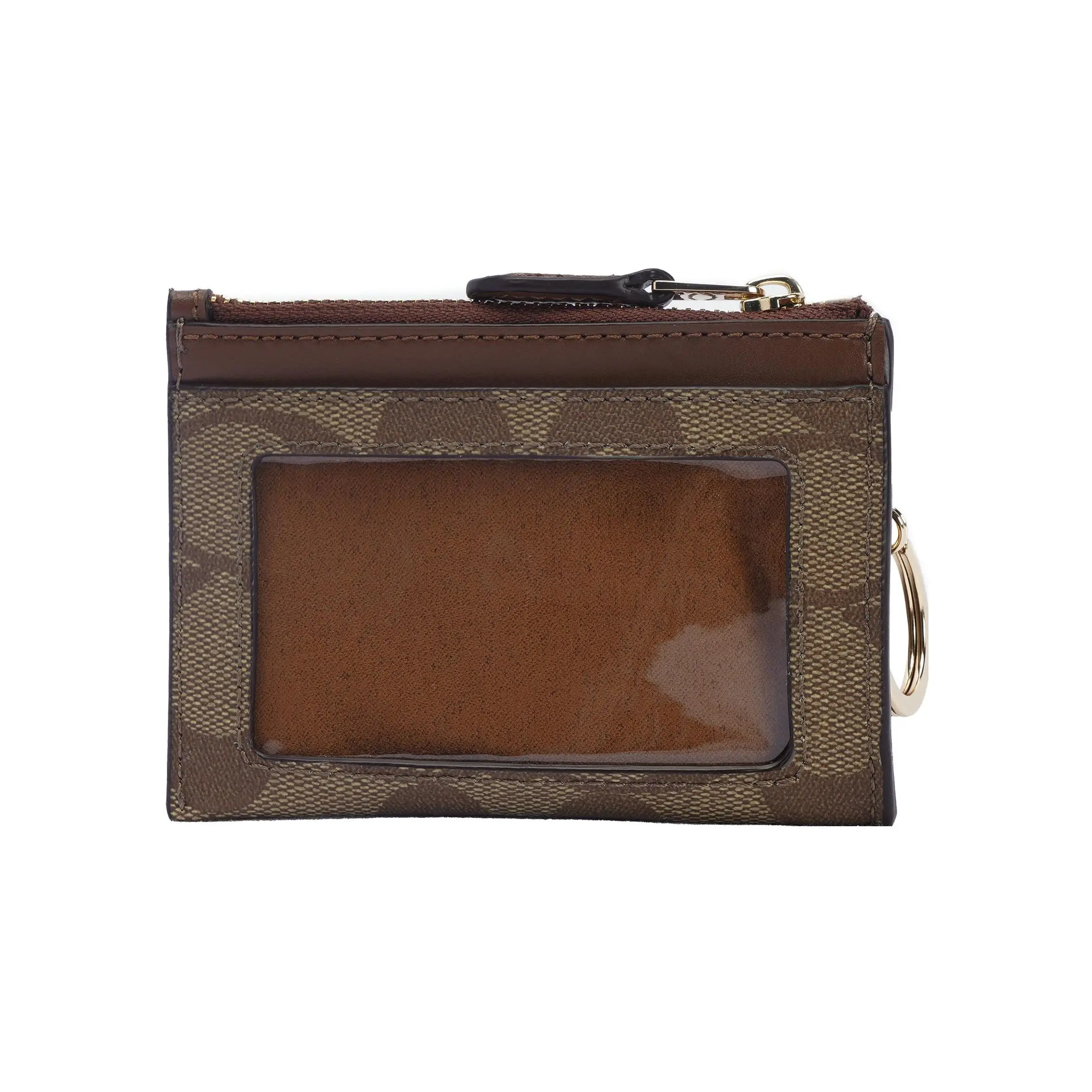 COACH Skinny 11 PVC ID Holder & Key Case (Mini Wallet for Women) – Brown Signature Canvas