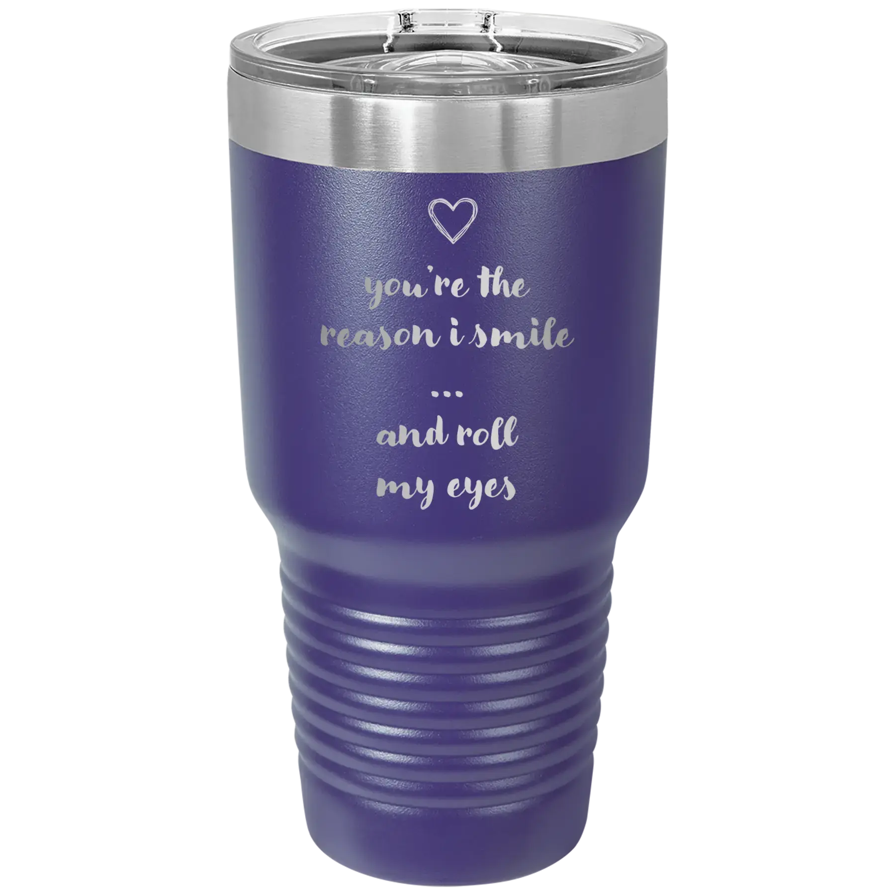 You're the Reason I Smile and Roll My Eyes 30 oz Tumbler | Purple
