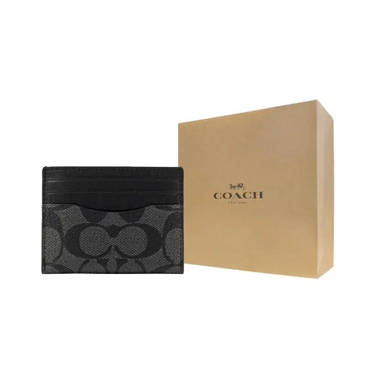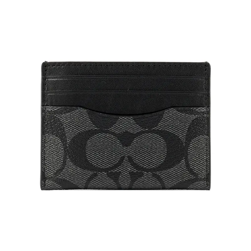 COACH Card Case for Men – Classic Monogram Style in Gray-Black Coated Canvas