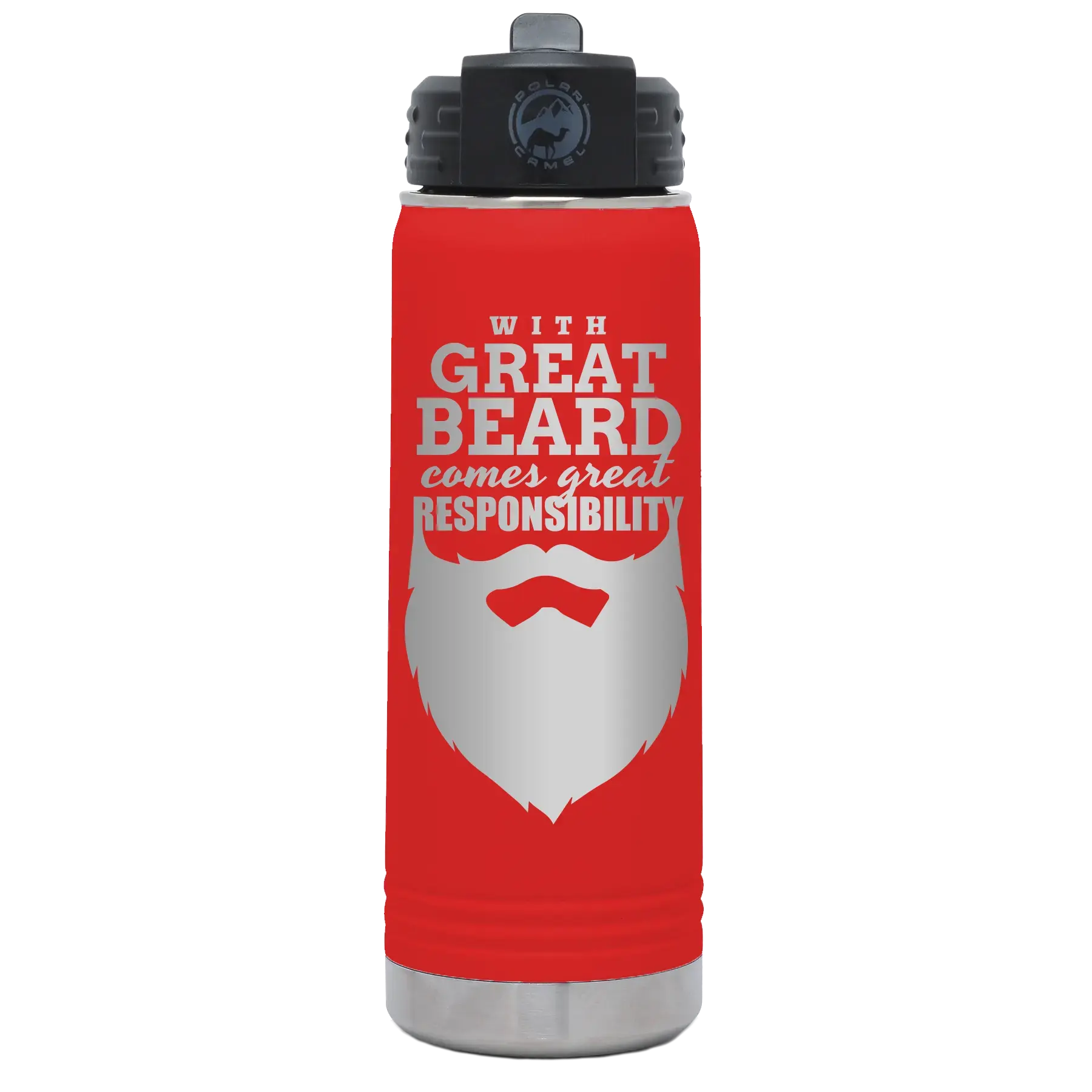 With Great Beard Comes Great Responsibility 20 oz Water Bottle | Red