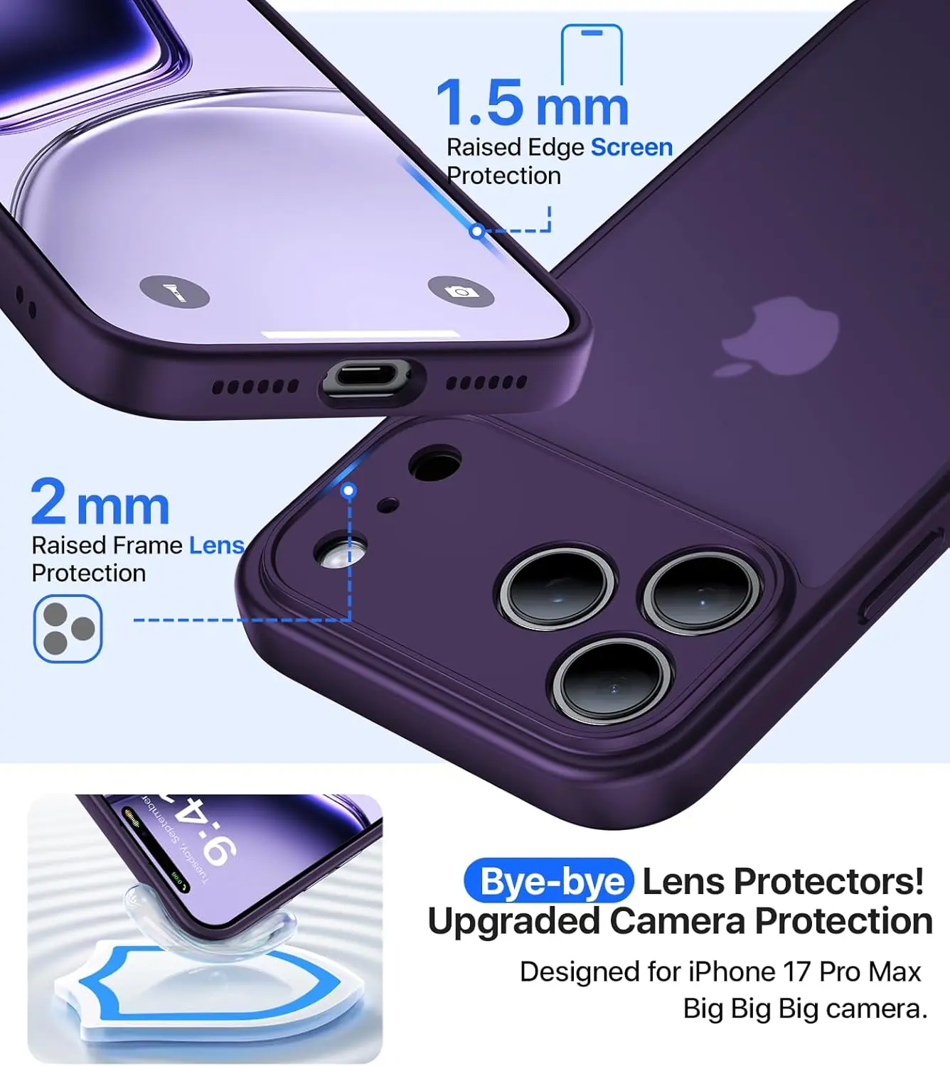 ·【Upgraded Full-Coverage Camera Protection】Unlike other normal phone cases, this 17 Pro Max case features upgraded millimeter-perfect precision and full-coverage protection with a 2.5mm thickened camera guard. No more scratches and bumps. Our i phone17 Pro Max case hugs your phone camera flawlessly—because every shot matters.