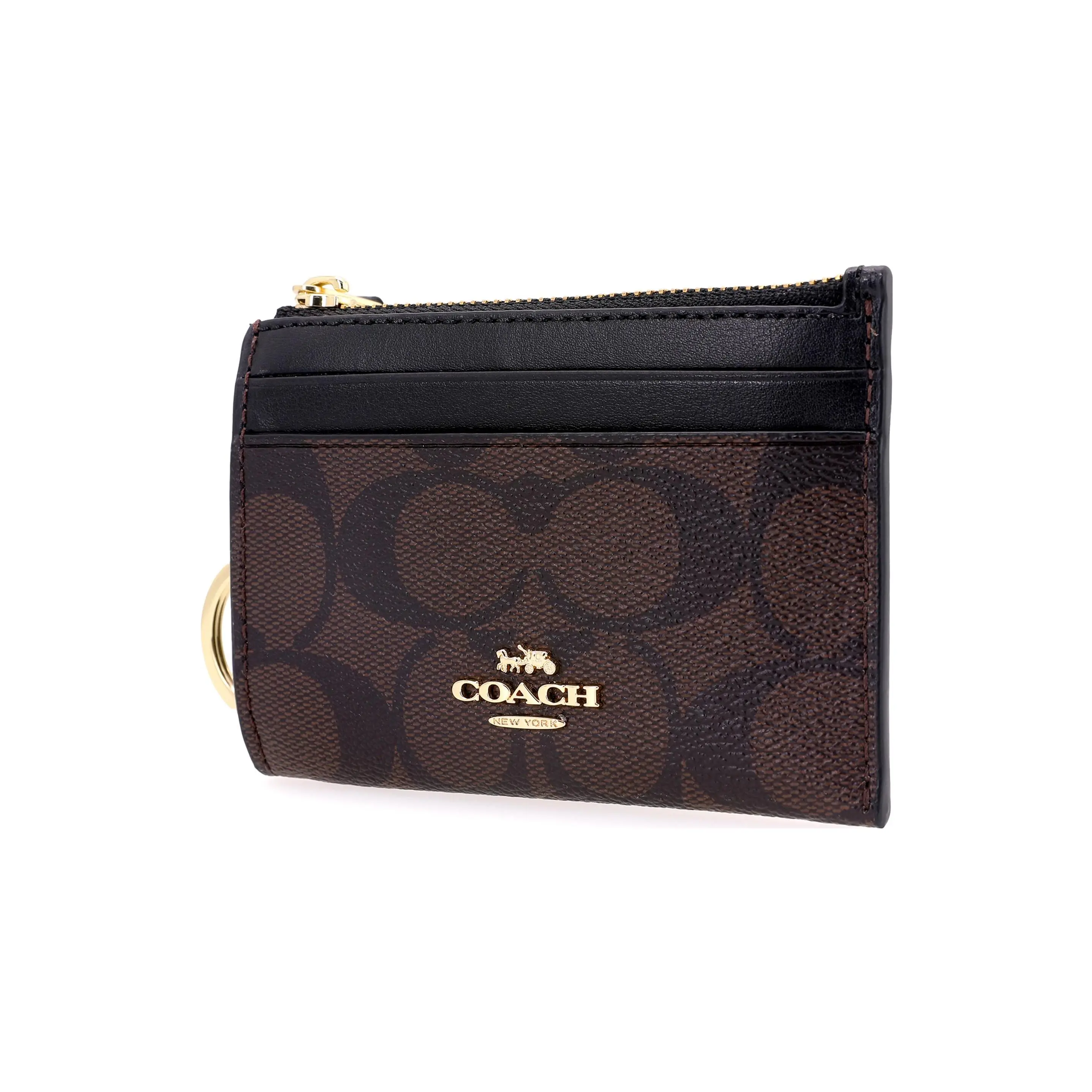 COACH Skinny ID Case for Women – Monogram-Print Coated Canvas and Smooth Leather Cardholder with Key Ring, Dark Brown