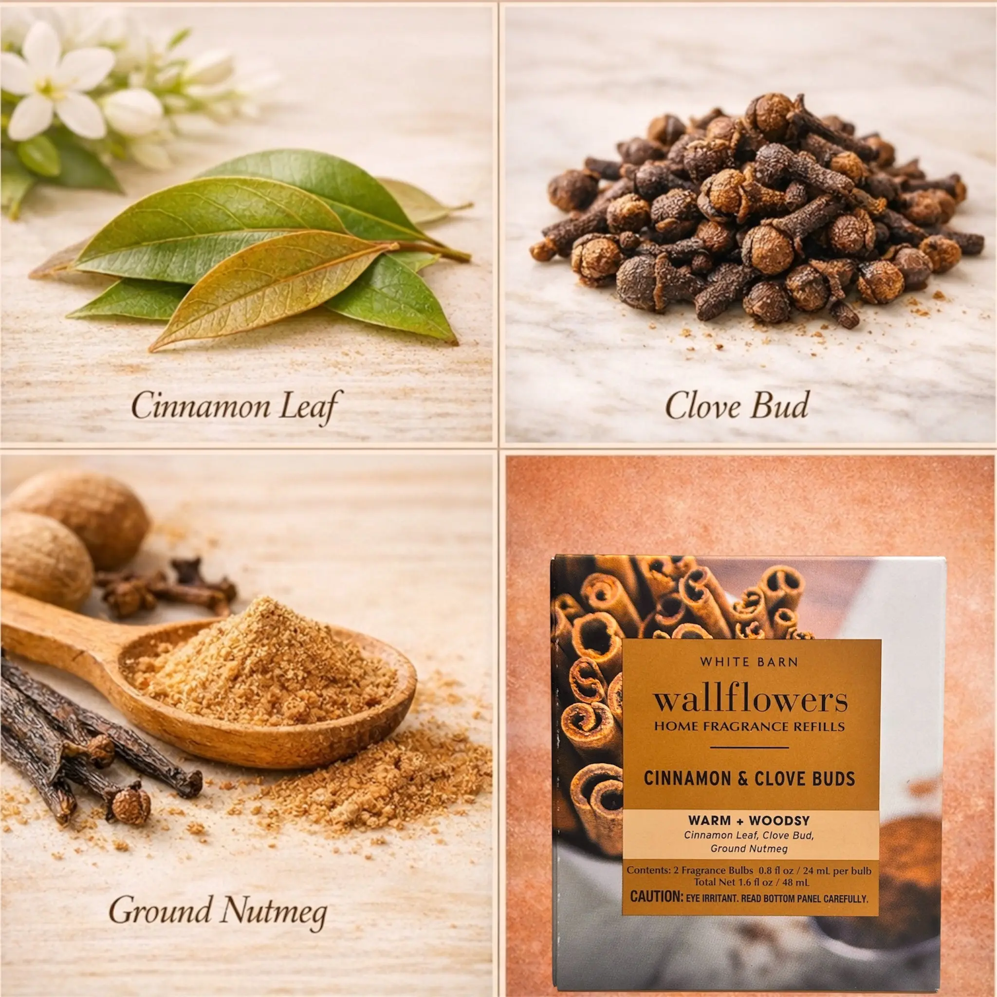 Warm spice meets home fragrance with these Cinnamon & Clove Buds Wallflowers. Plug into any standard outlet for continuous, long-lasting scent that fills your space with cozy cinnamon and aromatic clove notes. Perfect for entryways, bedrooms, bathrooms, or living areas. Each unit provides hours of subtle fragrance without flame or mess. Ideal for creating an inviting atmosphere year-round, especially during fall and winter months.