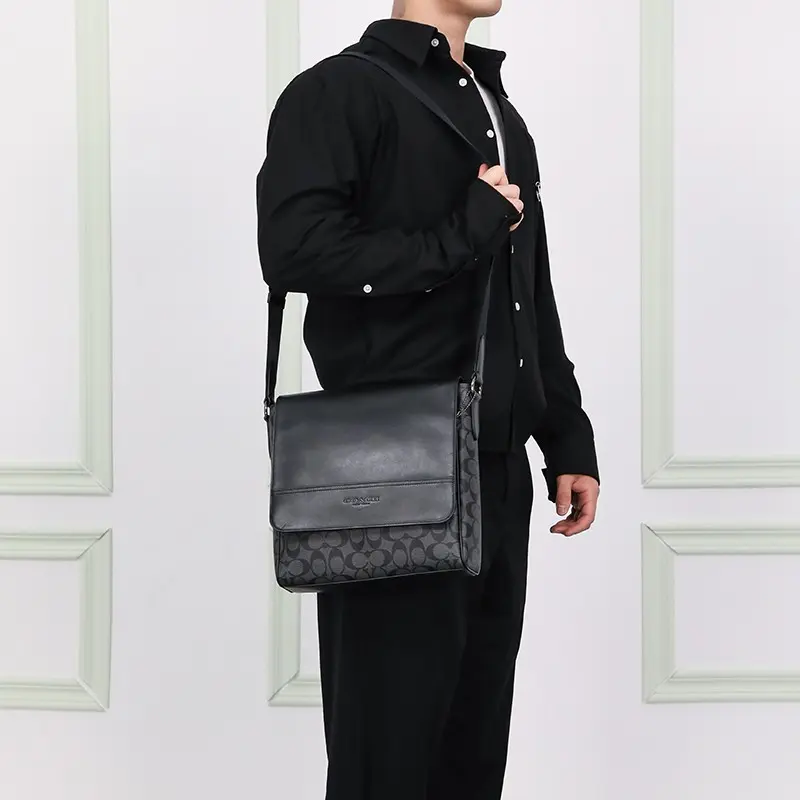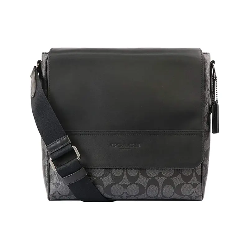 COACH Houston 27 Classic Monogram Crossbody Bag (Medium, Men's, Black)