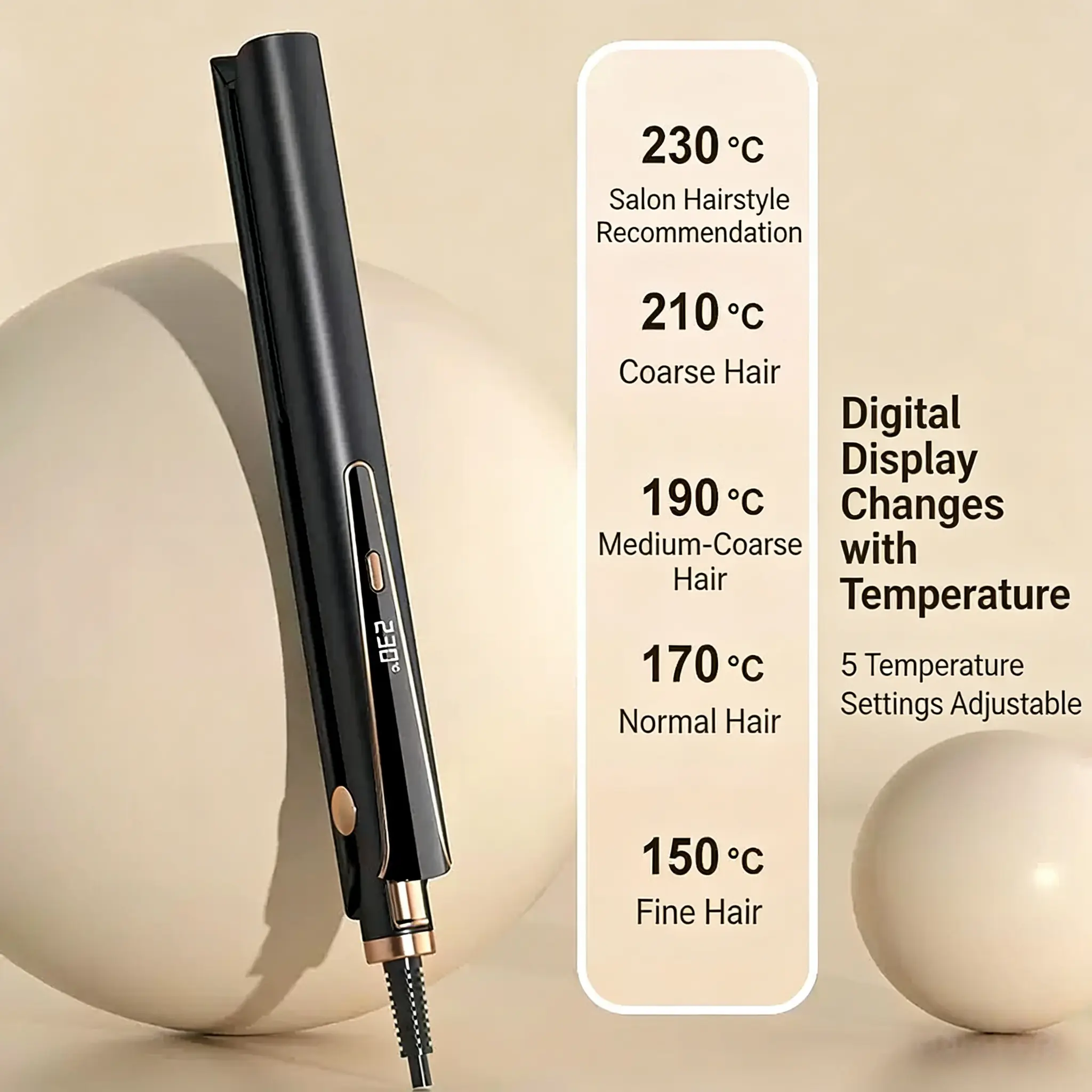 2-in-1 Hair Straightener Curler Flat Iron, Double-Sided Curling Design, Ceramic Glaze Plates, Fast Heat 35W, LCD Temperature Control 150–230°C, Portable Styling Tool for Salon Results at Home