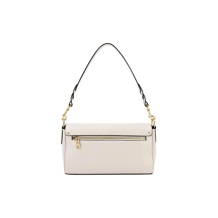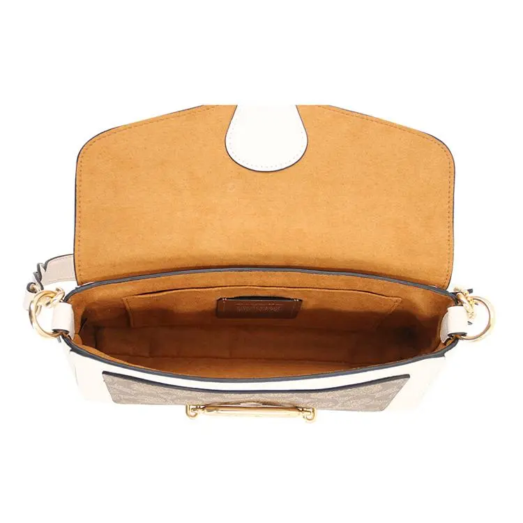 ·Iconic dual-tone design: crisp white grained leather contrasted with deep brown pebbled leather