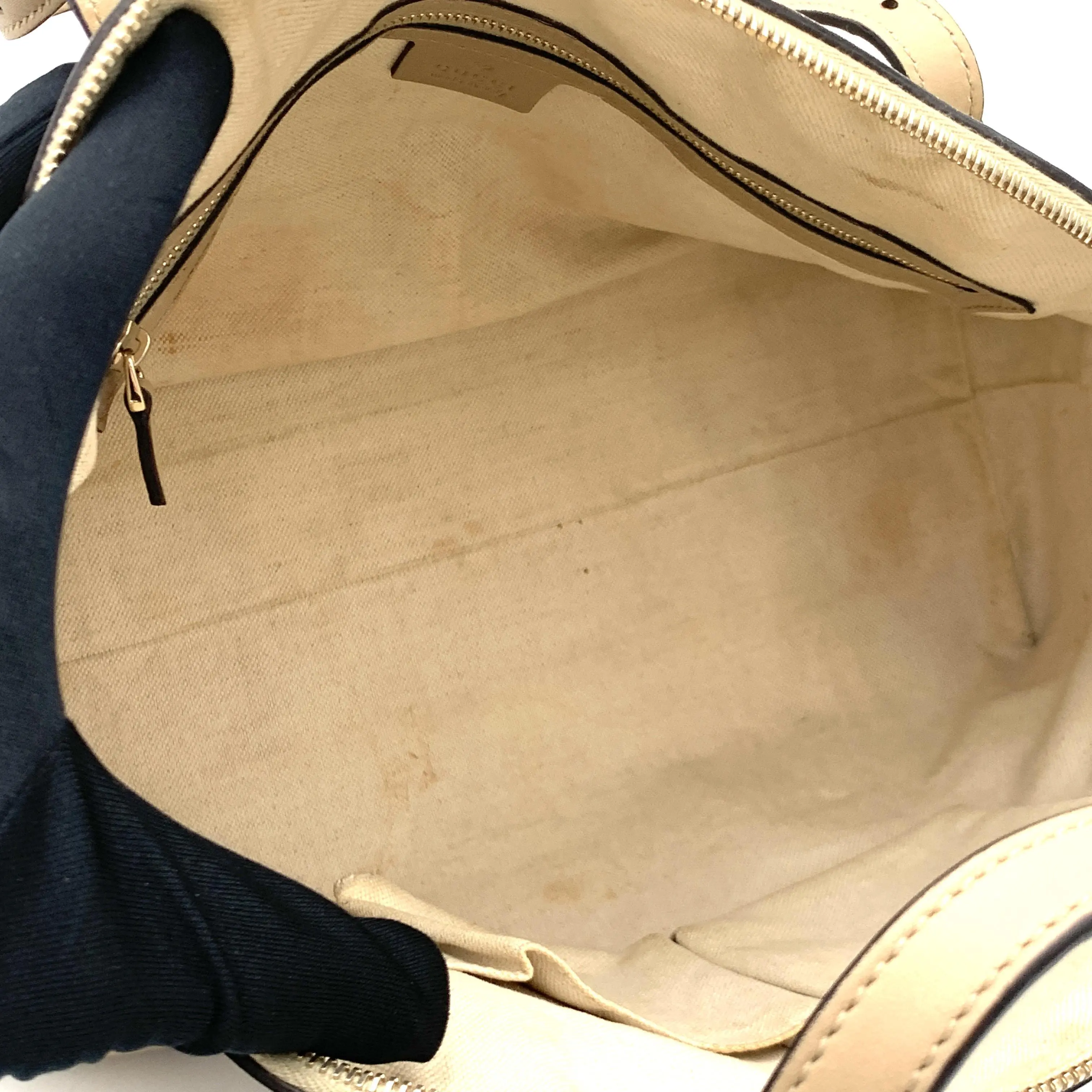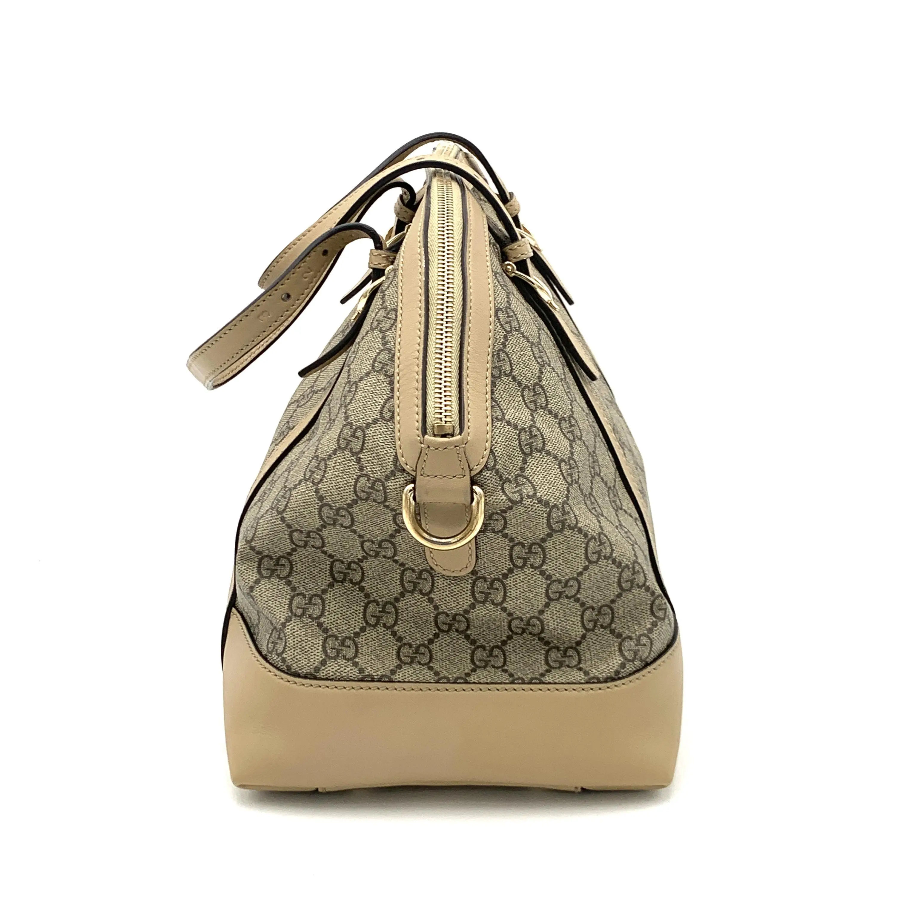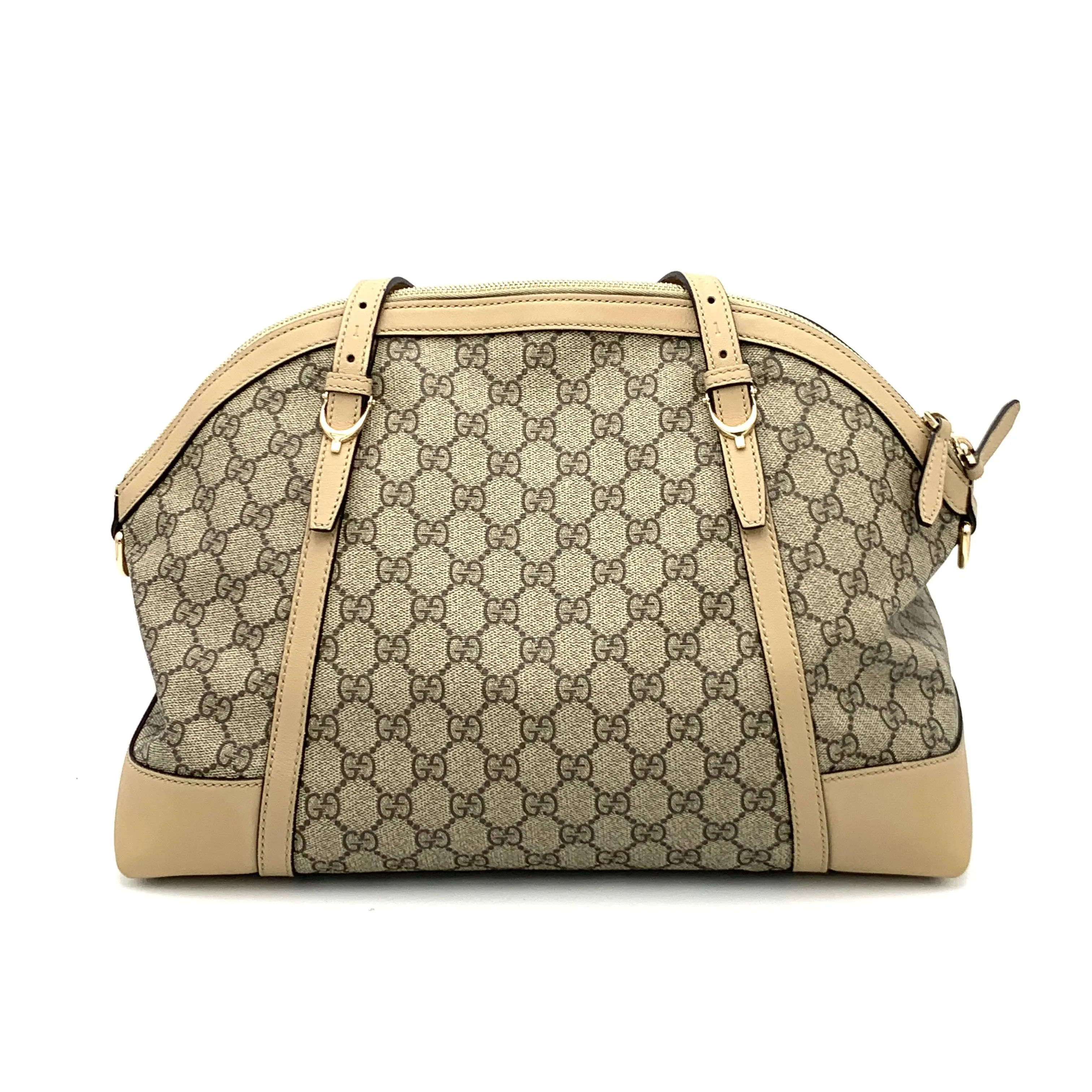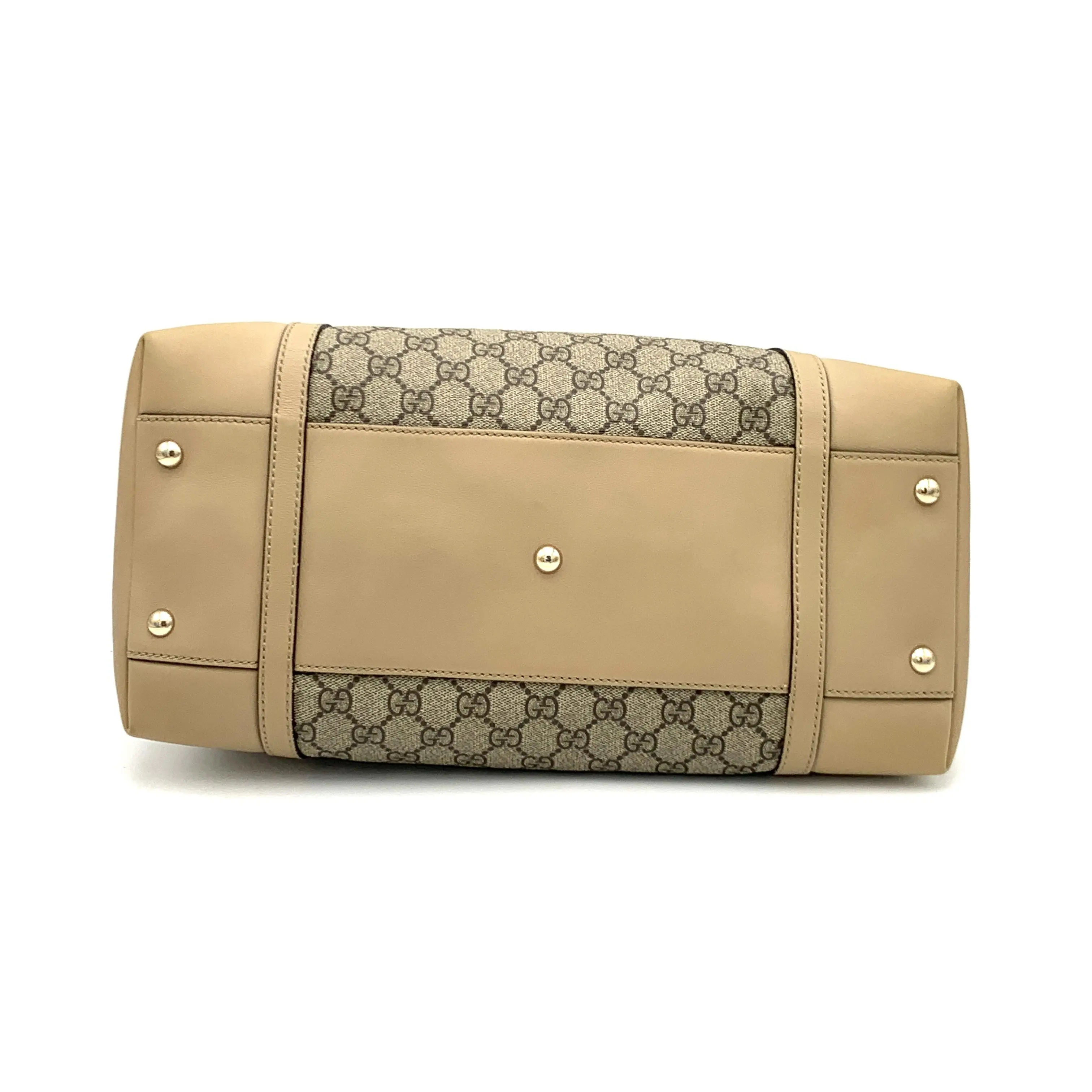 This pre-owned Gucci Nice Top Handle Bag GG Coated Canvas Large in Beige is a great addition to your collection!