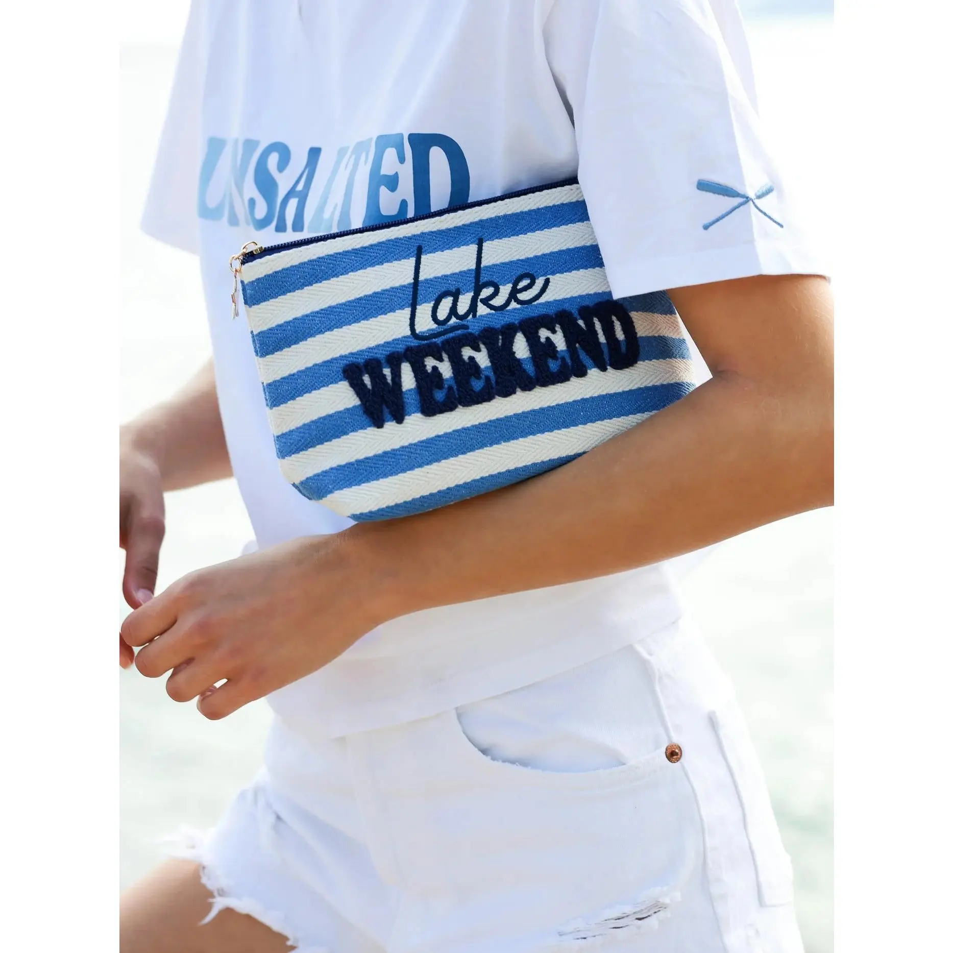 Perfect for weekend getaways and lake trips, this spacious zip pouch keeps your essentials organized and protected. The large capacity accommodates sunscreen, sunglasses, phone, and more, while the durable construction handles beach days and outdoor adventures. Charming lake-inspired design adds a touch of personality to your travel gear. Lightweight and easy to pack, it's an ideal companion for any weekend escape.