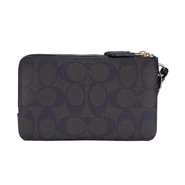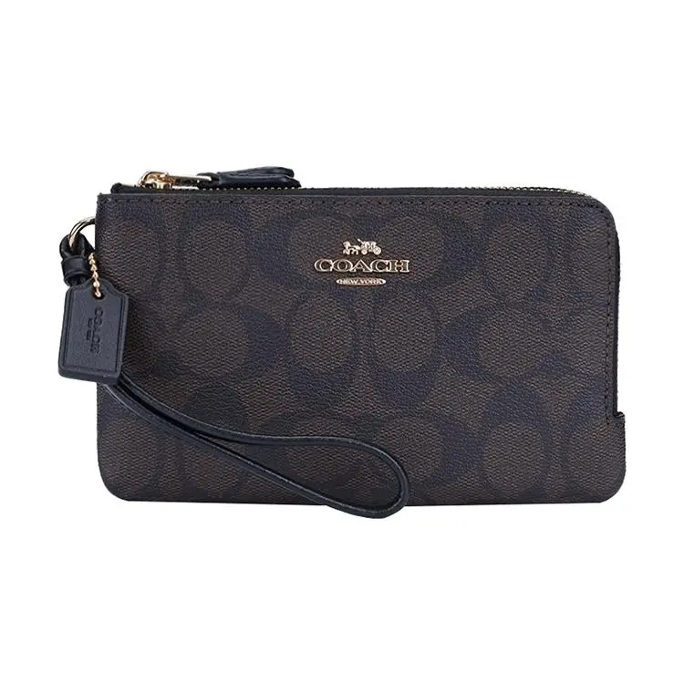 COACH Corner Zip Mini Wristlet Clutch (Black-Brown)