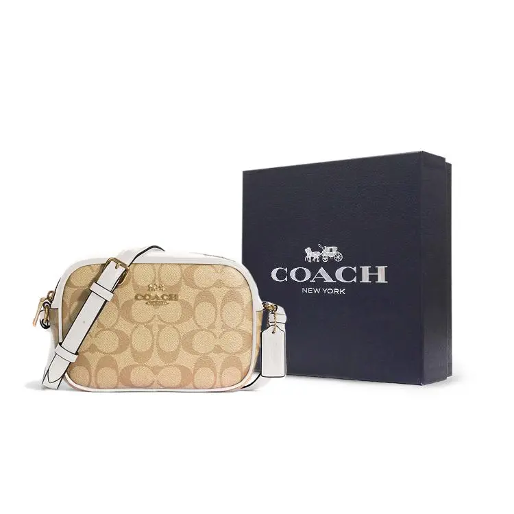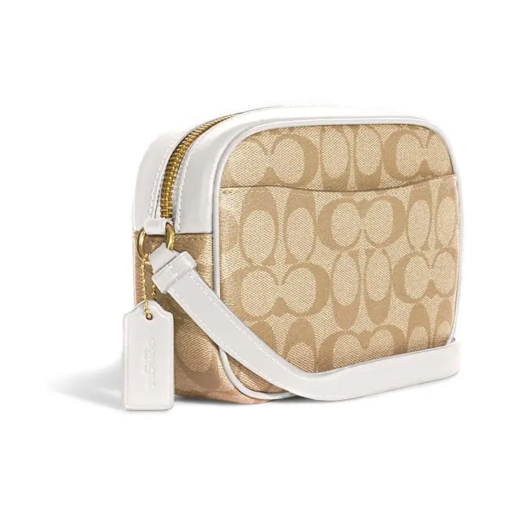 COACH Camera 19 Classic Crossbody Bag – Small Size, Women’s White & Khaki Monogram Canvas