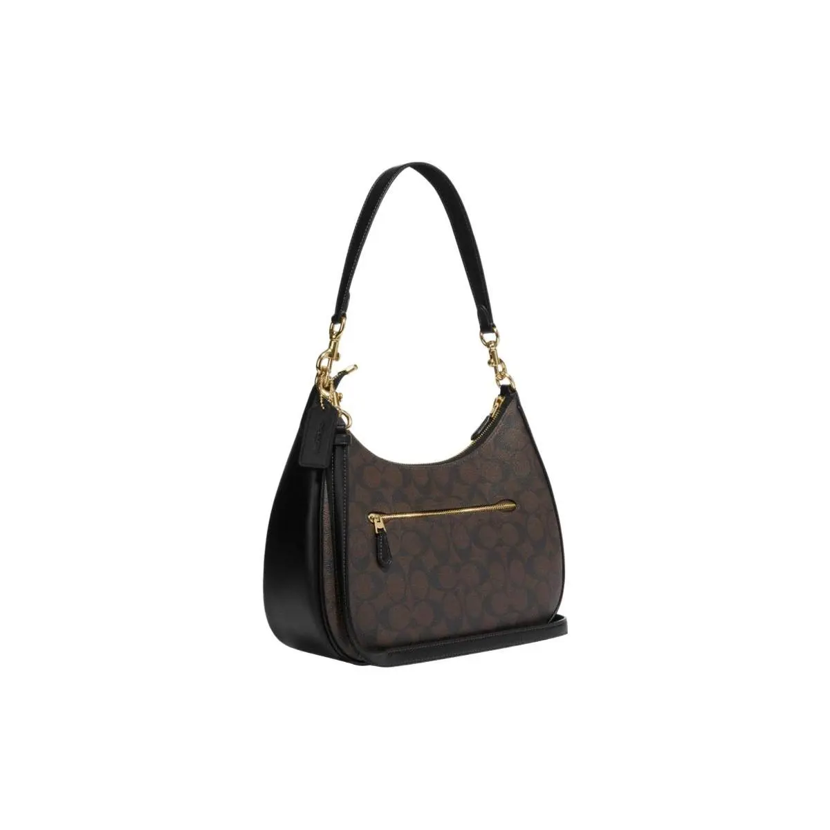 ·Iconic gold-tone COACH logo plaque for instant brand recognition