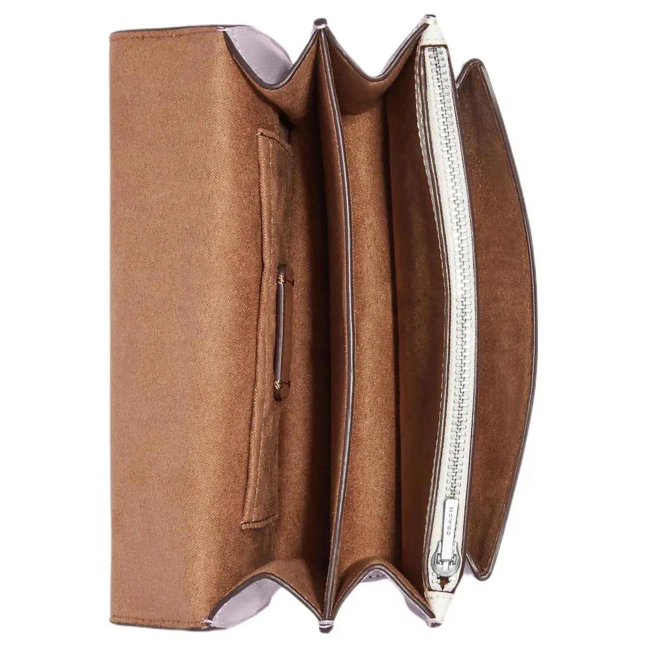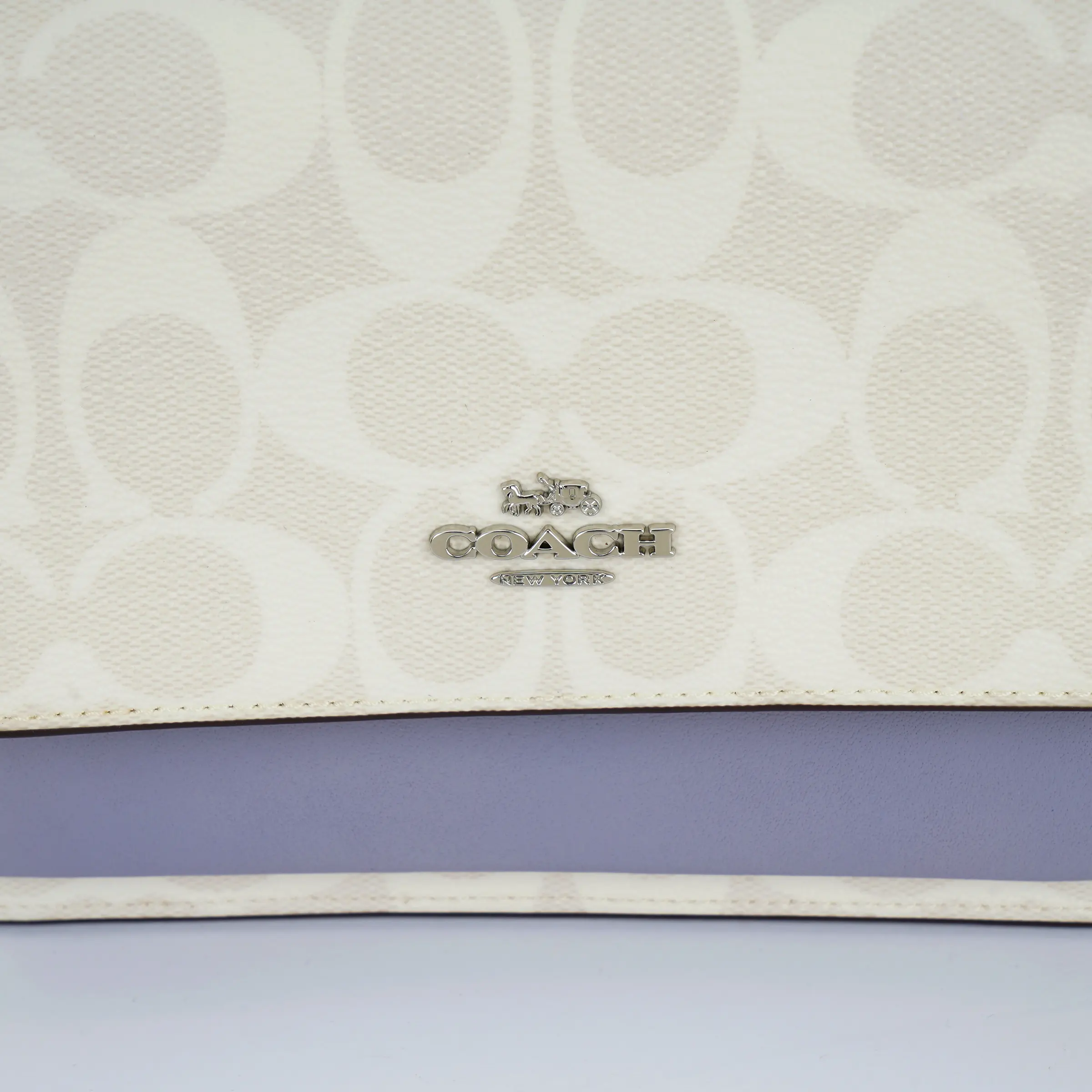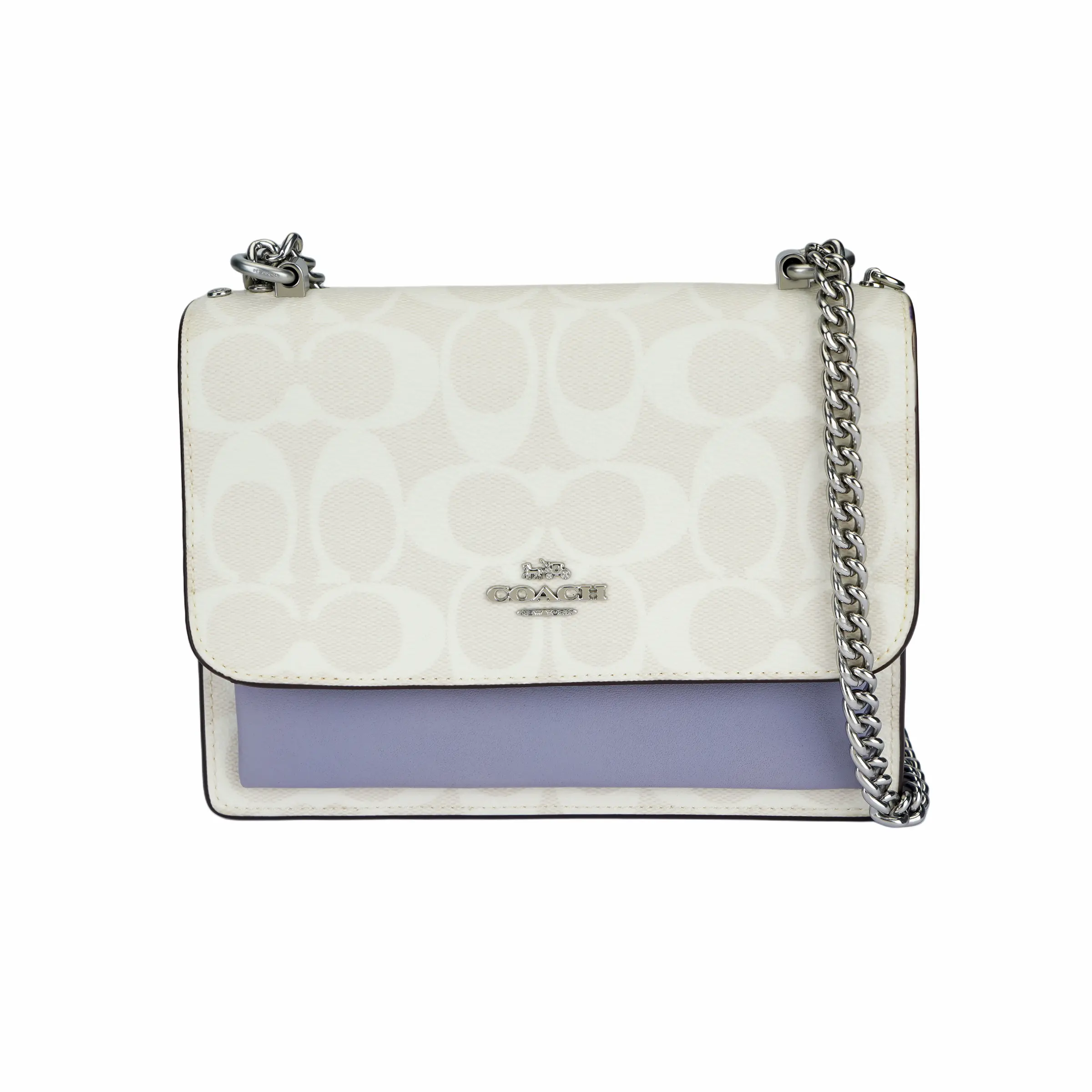 COACH Klare 18 Classic Monogram Flap Crossbody Bag for Women – Mini Canvas and Leather in White and Lilac