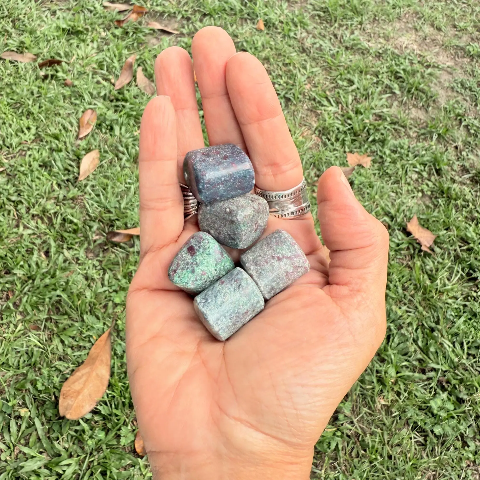 Presenting a beautifully polished tumble stone of ruby‑in‑kyanite, approximately 1.5 inches in size. Each piece combines vivid ruby specks embedded in soothing kyanite matrix—ideal as a pocket companion, meditation tool, or as part of a crystal collection.