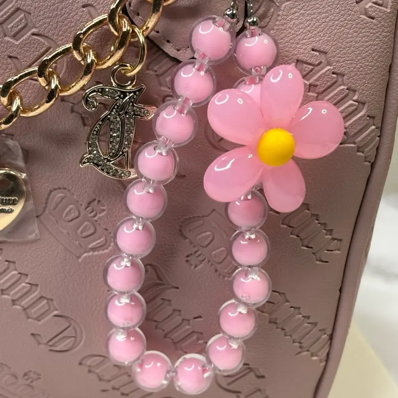 ·Key Features: Beaded flower design Crystal charm keychain Wrist strap for secure attachment