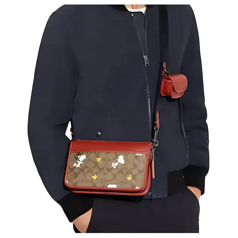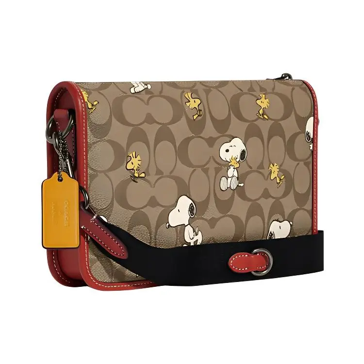 Design Concept: Inspired by vintage Americana and childhood joy, the bag merges COACH’s iconic Heritage monogram with Snoopy’s cheerful charm—featuring all-over cartoon prints, retro color blocking, and whimsical detailing like embroidered Snoopy patches.