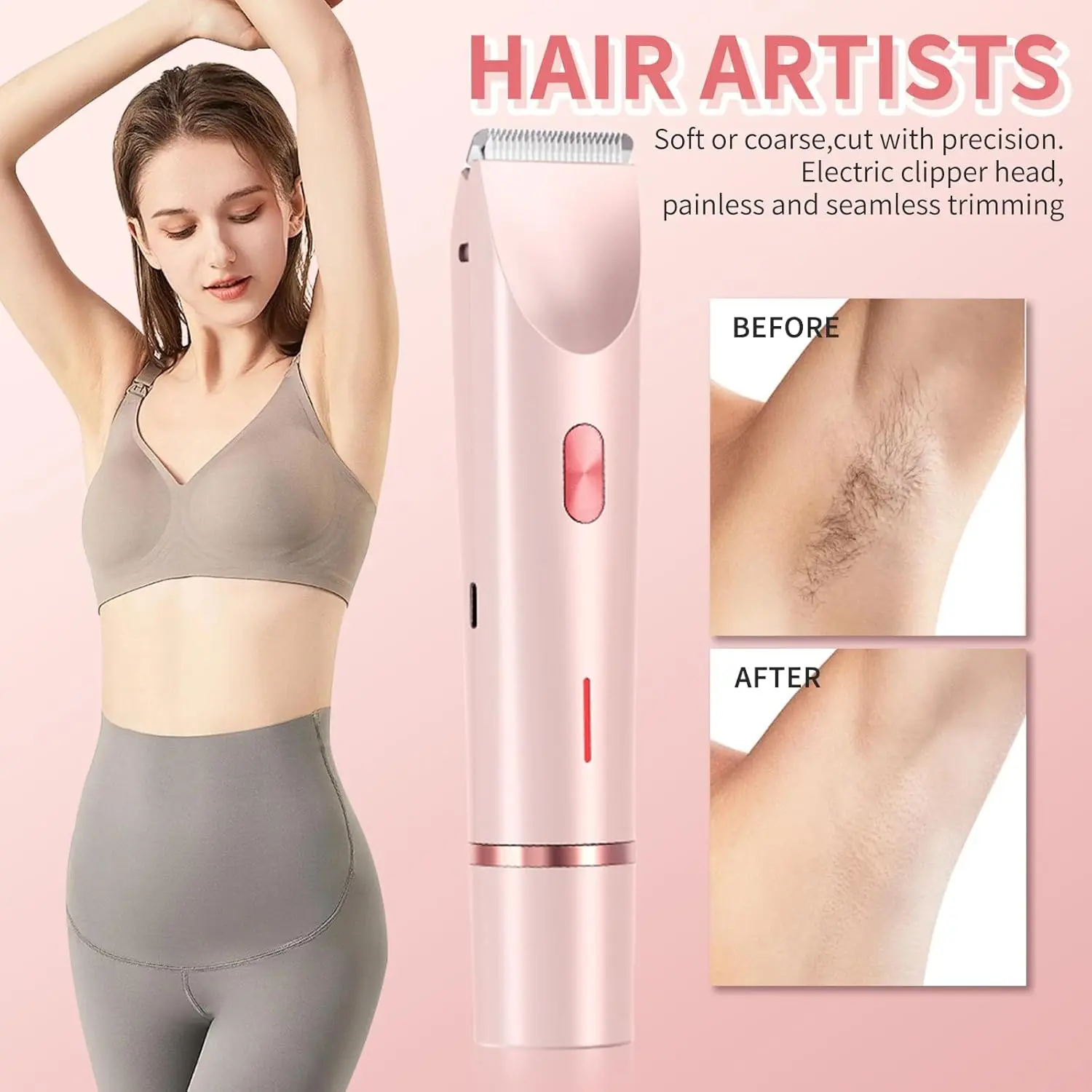 ·This women's shaver with magnetic dual heads and hypoallergenic ceramic blades gently adapts to underarms, legs, bikini lines, and body contours, featuring LED lighting and waterproof design for precise, irritation-free hair removal anywhere.