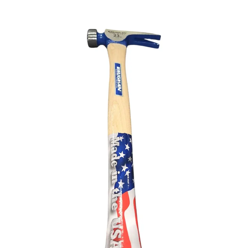 The VAUGHAN Hickory Handle California Framer® combines smoothly swept claws, a large striking face, hatchet eye, and sturdy handle to create a rugged, heavy construction rip hammer preferred by the pros for framing and demolition tasks. This hammer features an American forged high carbon steel construction and has been heat treated with a rust-resistant finish for extreme durability and strength. Choose a painted hickory or a hatchet-style hickory handle; the hickory handle absorbs shock, is well-balanced, and replaceable. This product is Made in the USA with Global Materials.