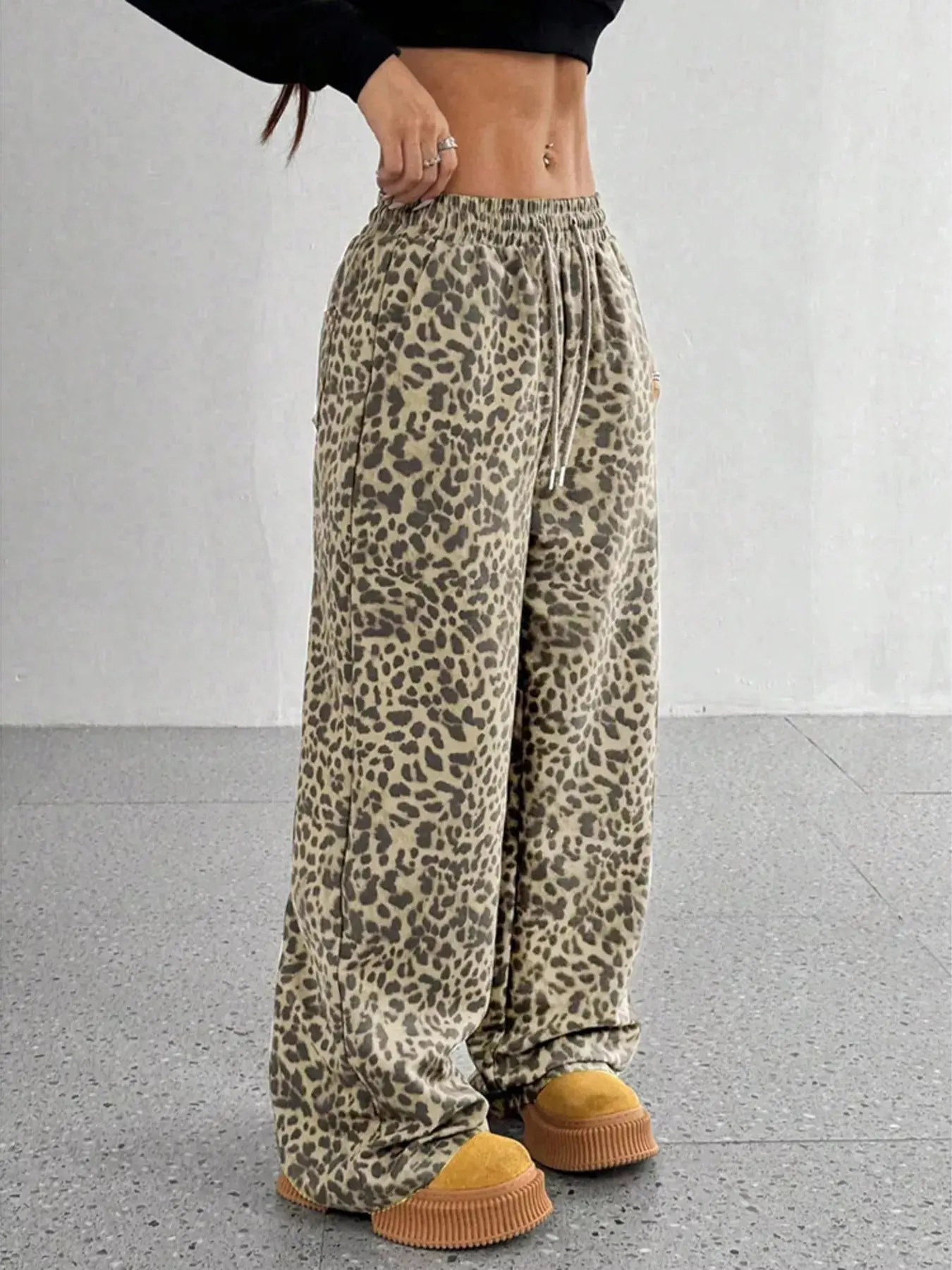 Turn heads in these full size leopard print wide leg pants. Made from a soft 95% cotton, 5% spandex blend with a drawstring waist, they're comfortable, stretchy, and flattering in sizes S–3XL. Available in Leopard, Black, Chocolate & Khaki.