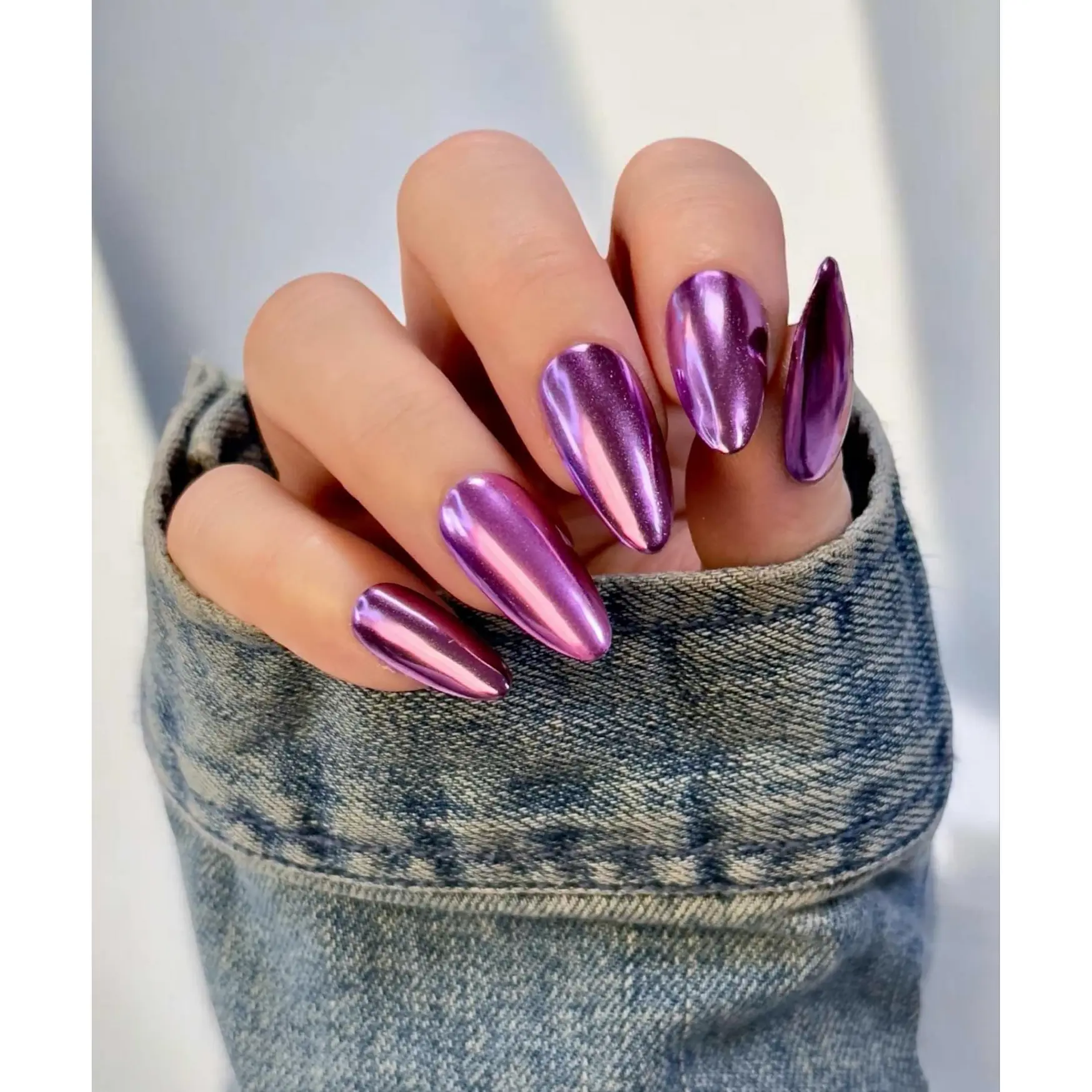 Transform your nails with Sundara Nails' Purple Magenta Foil-Chrome Powder. Apply a base coat, cure under UV light, and rub the powder onto nails with an eyeshadow applicator for a chrome effect. Enjoy a mirror-like shine and a touch of elegance. Trust Sundara Nails for quality and customer satisfaction. Enhance your nails effortlessly with our chrome powder.