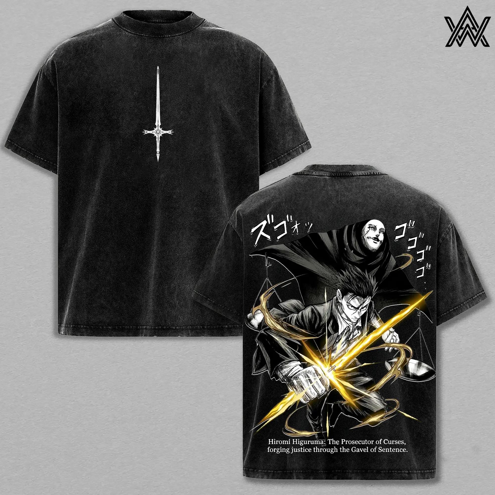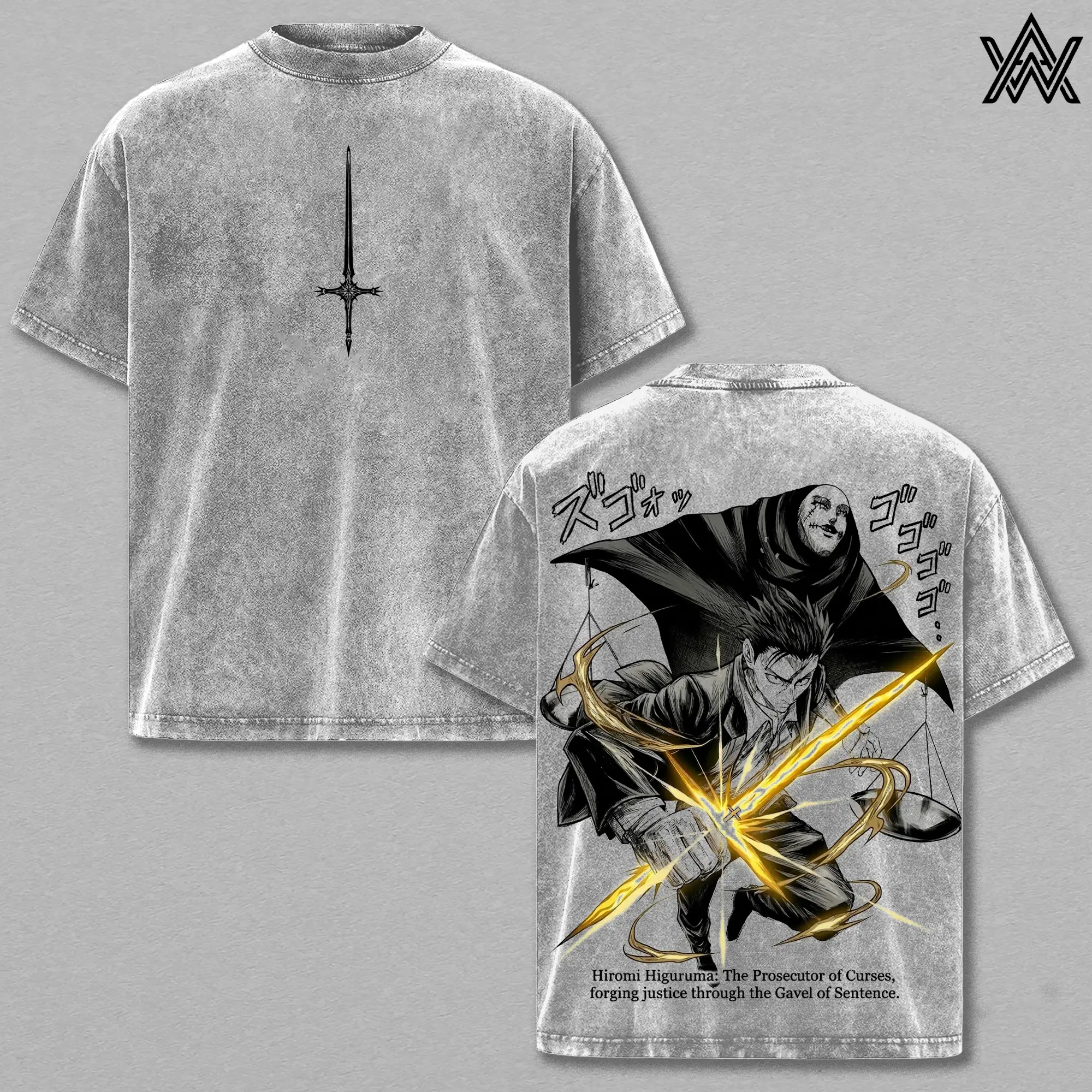 Hiromi Higuruma Tee Washed – Jujutsu Kaisen Washed Anime Manga T-Shirt, Vintage Washed Law Hammer Verdict Graphic Tee, Unisex Oversized Streetwear Shirt, Domain Courtroom Anime Aesthetic Tee, Gift for JJK Fans