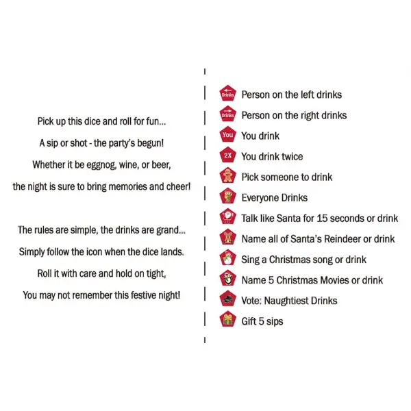 ·Features 12 festive sides with unique drinking instructions
