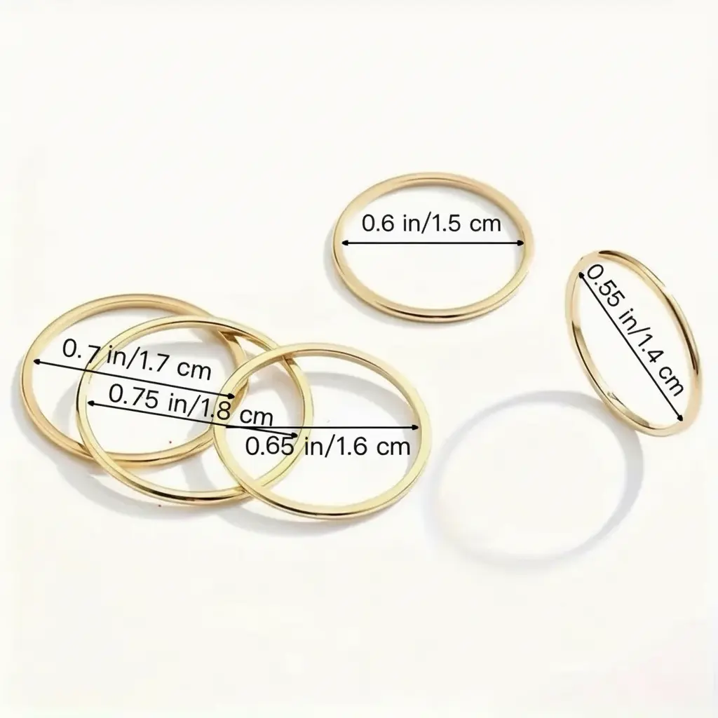 This 5-piece minimalist ring set features a sleek and delicate thin-band design that adds a clean, elegant touch to any outfit. Perfect for stacking, wearing alone, or styling on different fingers, these simple geometric rings are ideal for everyday wear.