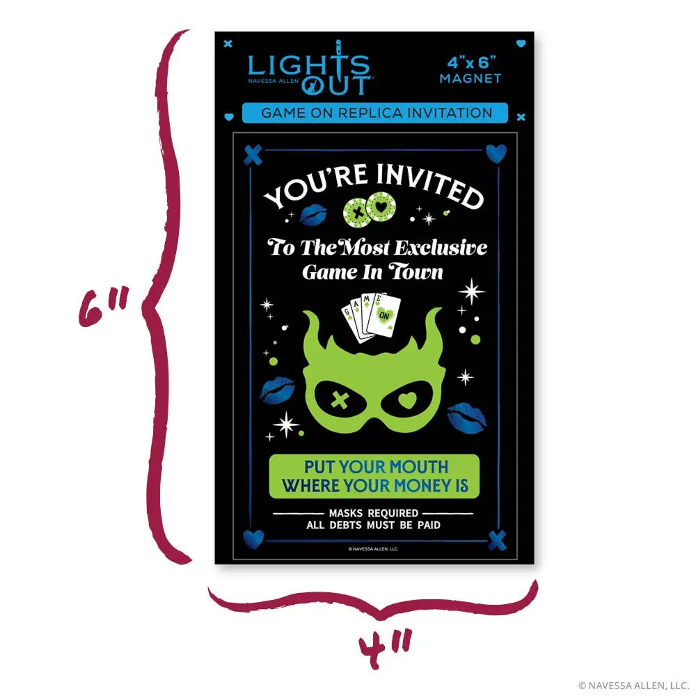 This Officially Licensed Game On Replica Invitation Magnet is a magnetic replica of the invite to Mr. Strickland's infamous gambling den. Display it on your fridge, locker, or in your personal lair as a reminder that the most dangerous decisions often arrive disguised as a good opportunity.