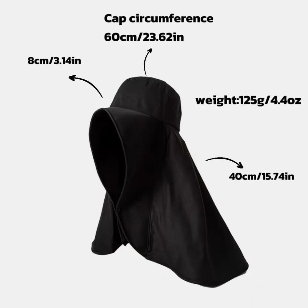 FeatureDetailsProtectionHigh UPF — blocks UVA/UVB raysNeck CoverageRemovable neck flap (covers neck + ears)BrimWide — shields face and eyesMaterialLightweight, breathable, quick-dryFitAdjustable chin strap + head circumferencePortabilityFoldable — compresses for storageUseBeach, fishing, hiking, camping, gardening, travel