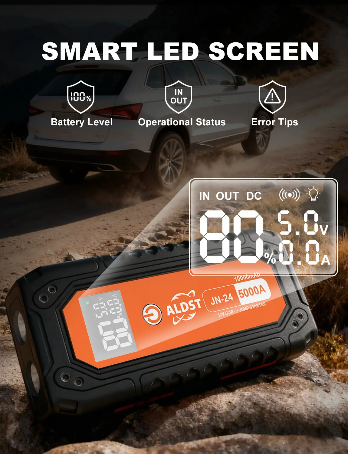 ·CLEAR POWER DISPLAY: Stay fully informed with the intelligent LED screen. It provides real-time data on power levels and operational status, solving the uncertainty of not knowing if your car battery jump starter is ready. This clarity is crucial for making informed decisions during any roadside scenario
