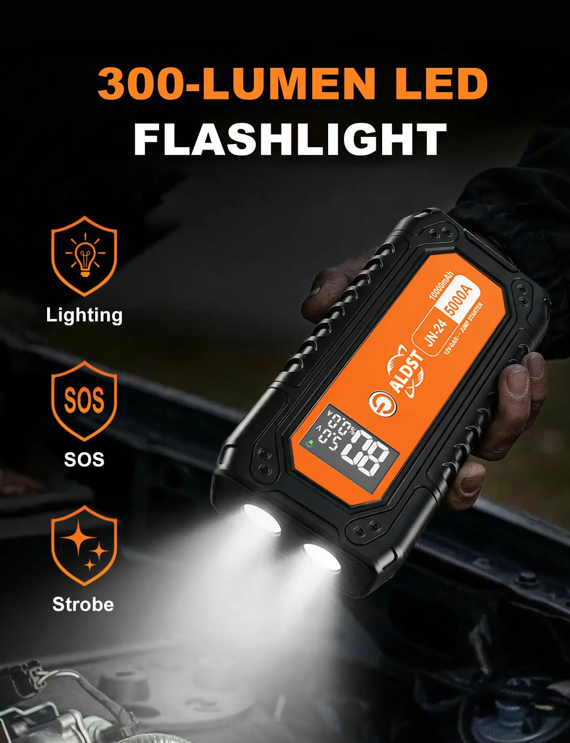 ·EMERGENCY FLASHLIGHT: Be seen and see clearly. The 300-lumen LED flashlight with SOS mode is crucial for changing a tire on a dark road, signaling for help during hiking trips, or finding your keys in a dim parking lot. Safety and utility, built right in.