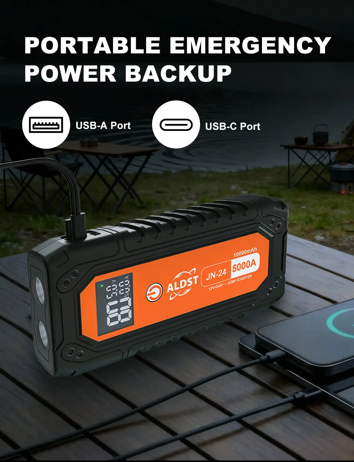 ·DUAL POWER SOURCE: Beyond jumping your car, it's a versatile power bank with USB and Type-C ports. Keep your essential gadgets charged anywhere-suitable for commuters, outdoor enthusiasts, and as an emergency home backup.