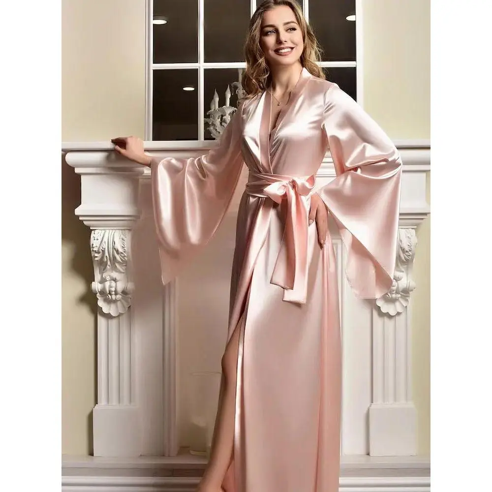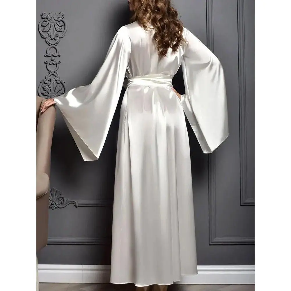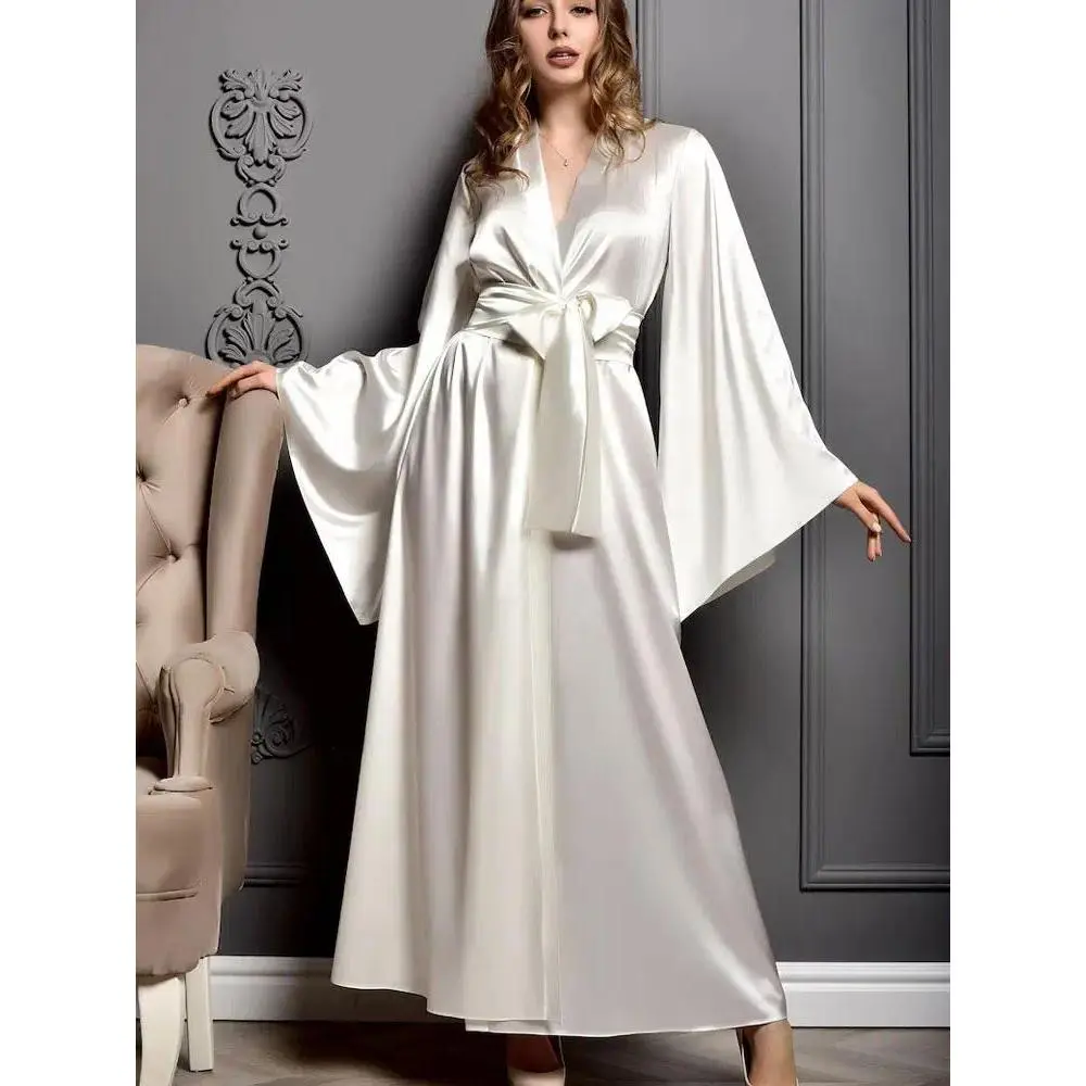 Maxi Bridal Robe Floor Length Wedding Kimono Satin Bachelorette Party Dressing Gown Boudoir Robe Gift for Friend Sexy Long Dress