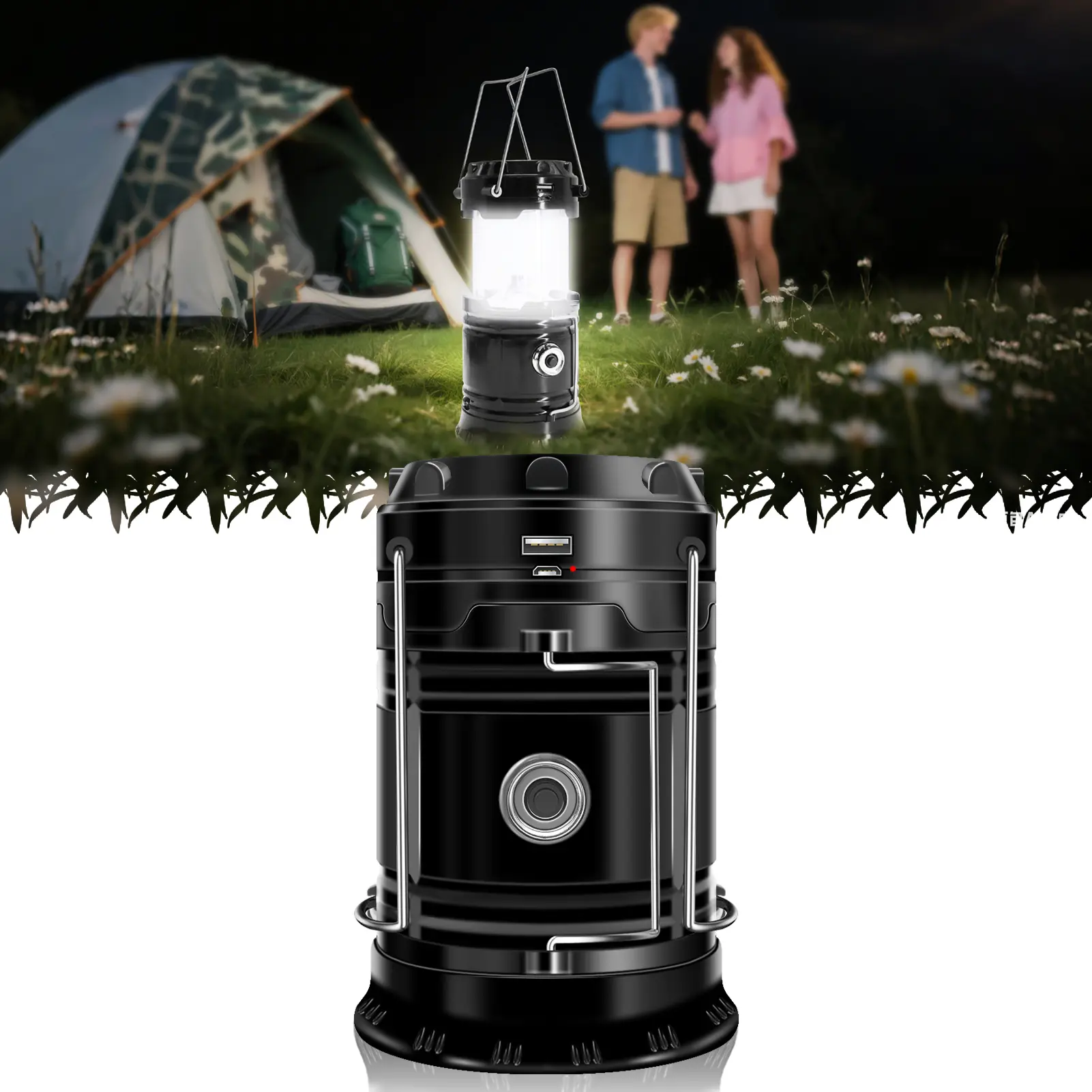 【Two Charging Methods】Built-in 1600mAh rechargeable battery, the upgrade led lantern with two charging methods: Solar charging and USB Charging. Automatic power-off protection, Don't worry about overcharging.