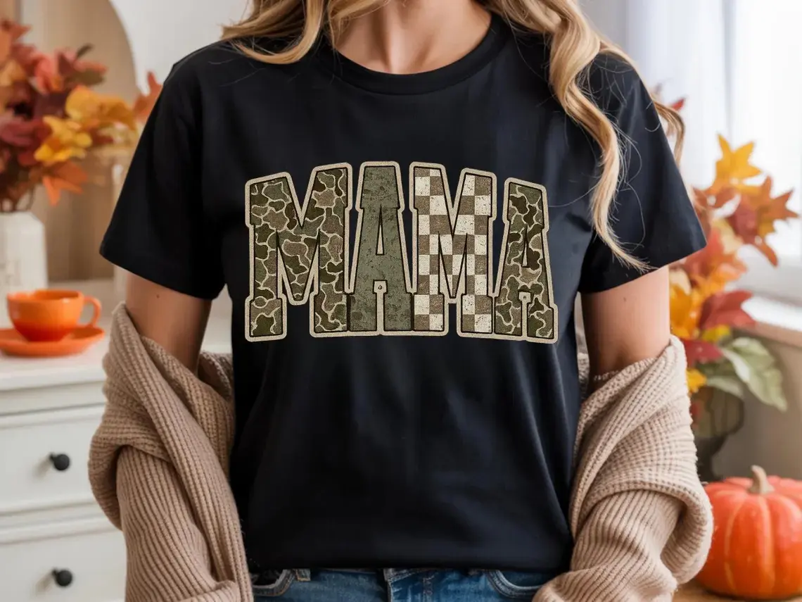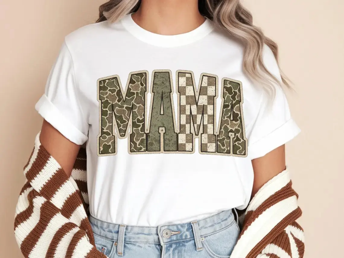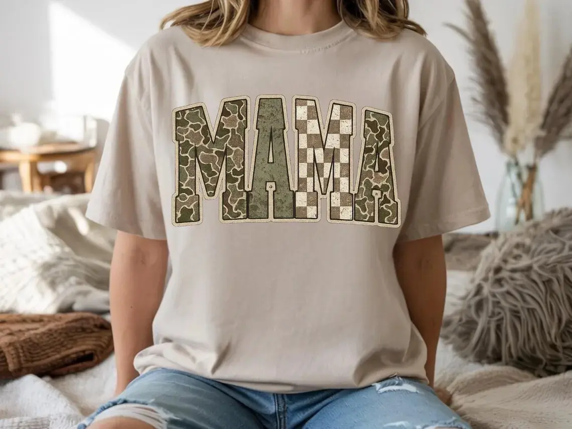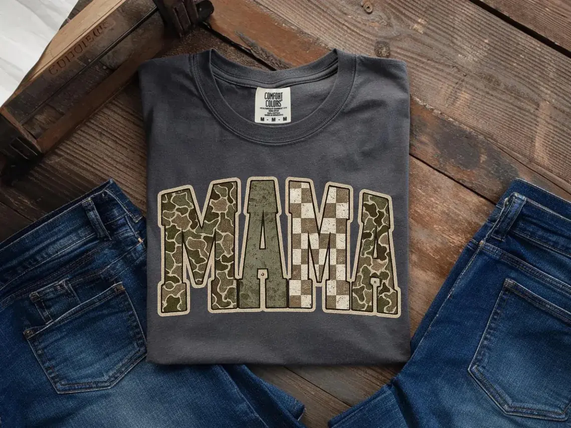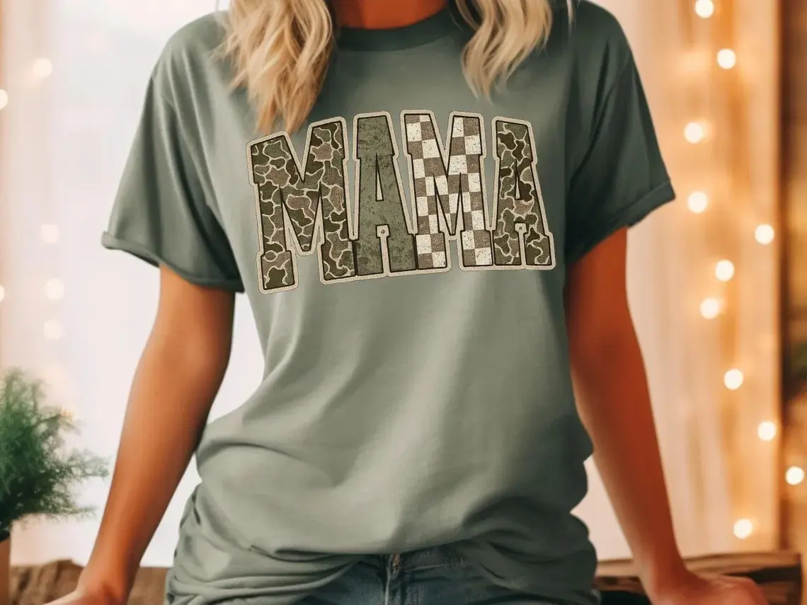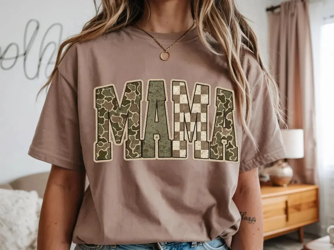 5. Comfort Colors Camo Mama Shirt, Trendy Mama Tee, Military Mom Graphic Tee, Cute Mom Life Shirt, Boho Checkered Camo Tee, Gift for Mom