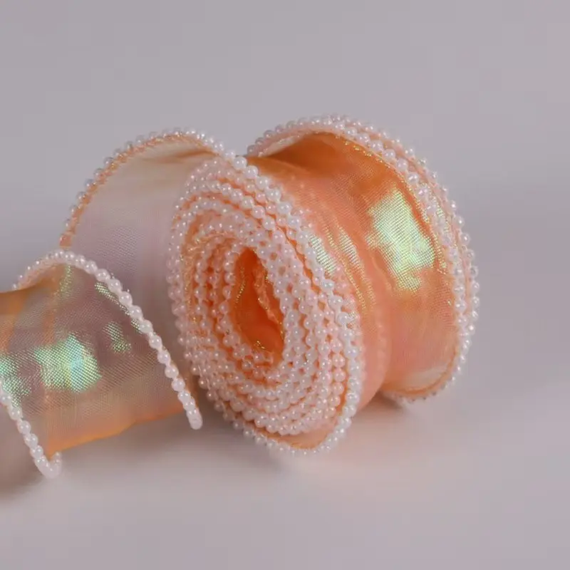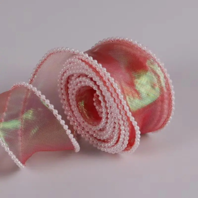 4cm Fish Tail Satin Ribbon with Pearl Trim, DIY Wedding Packaging Tape, Valentine's Day Gift Box Wrap, Floral Art Decorations