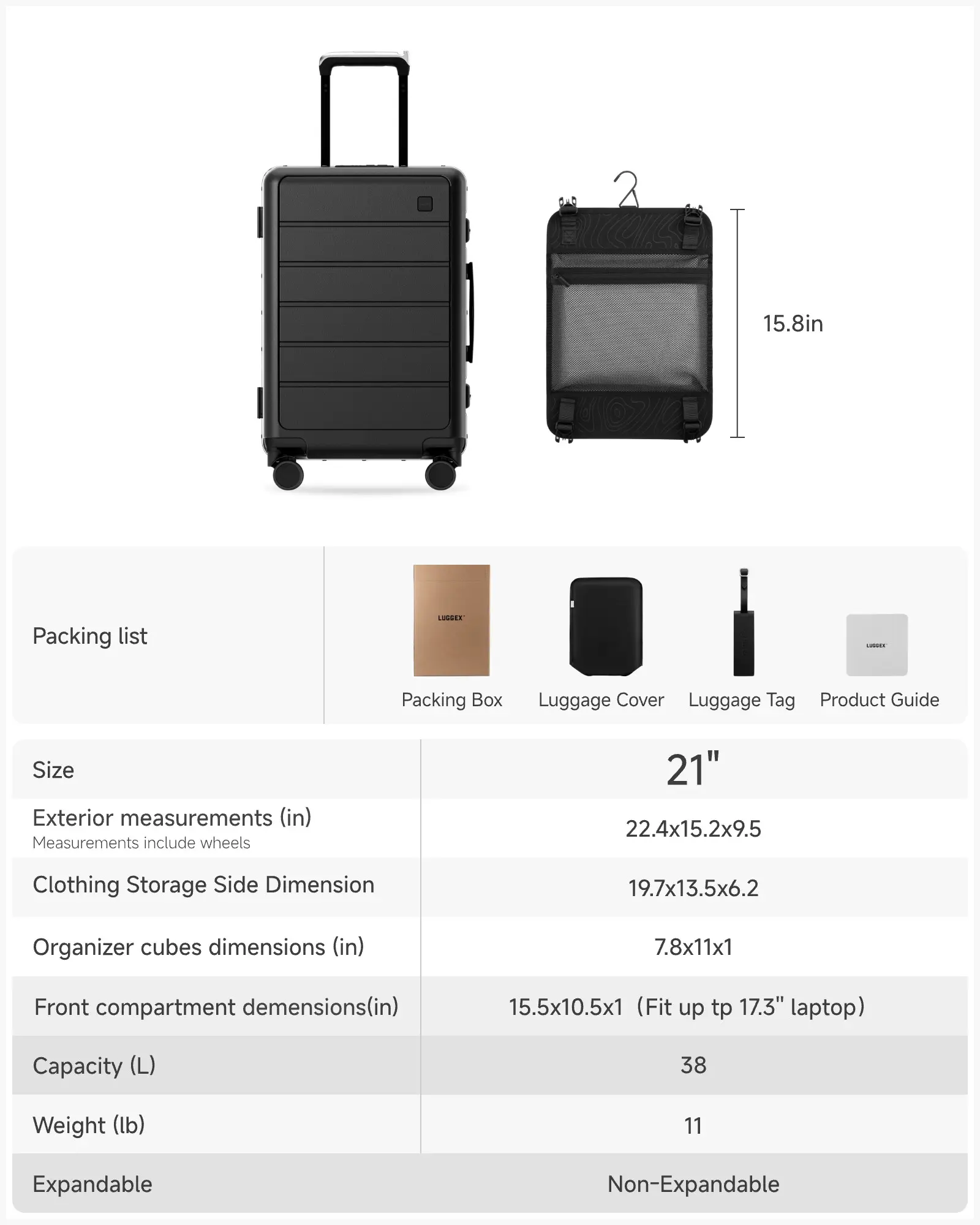 • Premium Travel Accessories Included - Ready for Adventure Complete your travel experience with our value-added package: genuine leather magnetic luggage tag with hook, and a custom-fit black protective cover. Meets standard carry-on dimensions (22.5"×15"×9.5") and is perfect for both business trips and extended vacations.