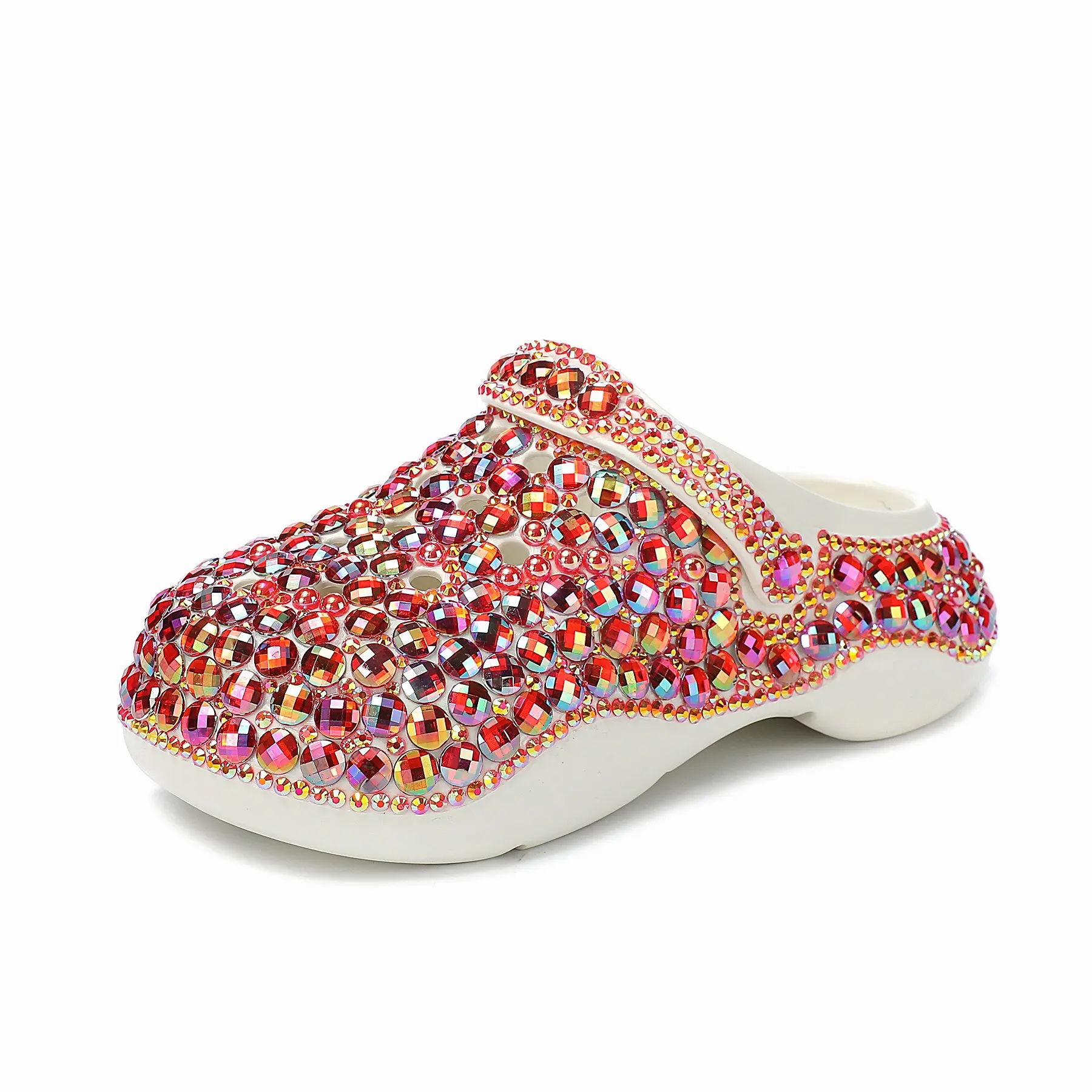 FoamFam Party to Vacation Sparkle Clogs Full Rhinestone Platform Thick Sole Light Luxury Bling Bedazzled Shoes for Women Handmade Custom Crystal Clogs for Everyday Glam Outdoor