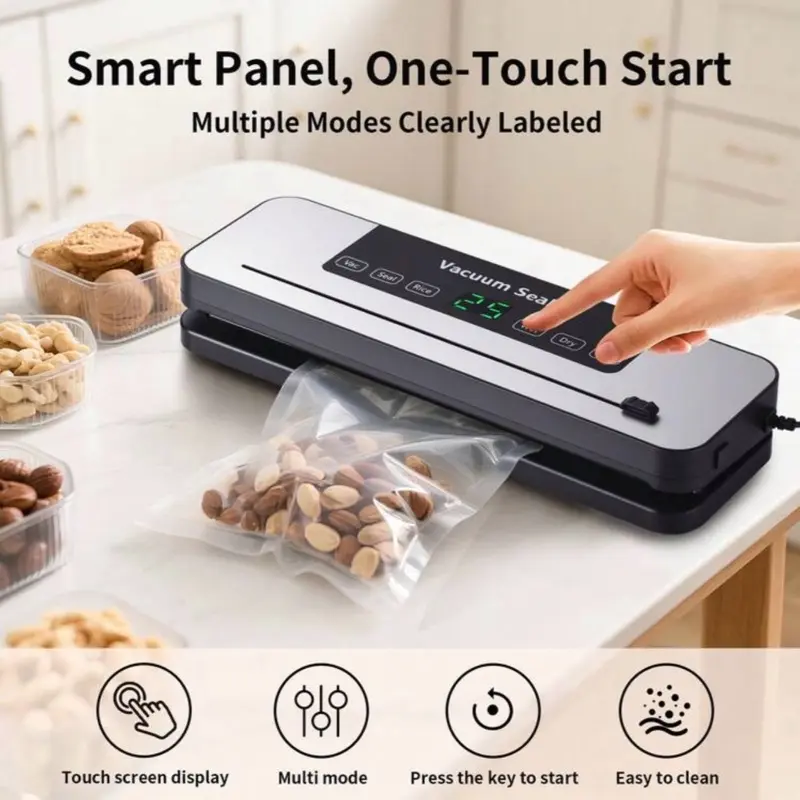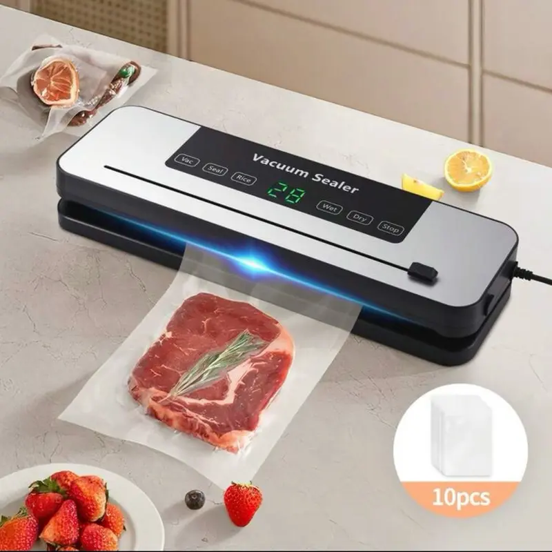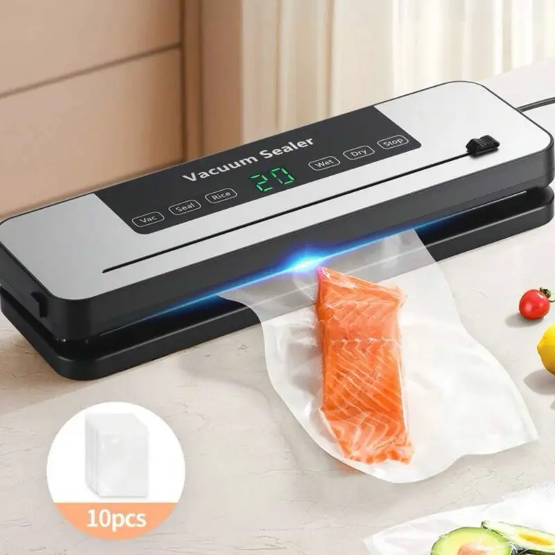 ⚡ One-Touch Automatic Sealing – Quick & easy operation ⏱️ Fast Sealing (10-20 Seconds) – Save time in the kitchen 🥩 Multiple Modes – Dry, Moist, Wet & Cold food settings 🔪 Built-In Cutter – Customize bag sizes effortlessly 📦 Includes 10 Vacuum Bags – Ready to use right away 🏡 Compact Design – Space-saving & easy to store 💪 Powerful Suction – Locks in freshness & flavor longer