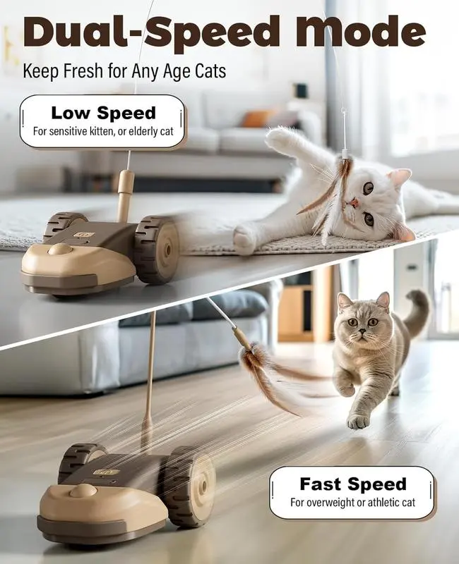 ·【Dual-Speed & Eco-friendly Materials: Safe for Any Age Cats】The fast and slow modes cater to your cat’s mood and activity level while also ensuring freshness and unpredictability in play. Our mouse cat toy crafted from BPA-free and food-grade ABS & silicone is secure for sensitive kittens, elderly, arthritic, overweight and athletic adult cats, no worries about when licking toys.