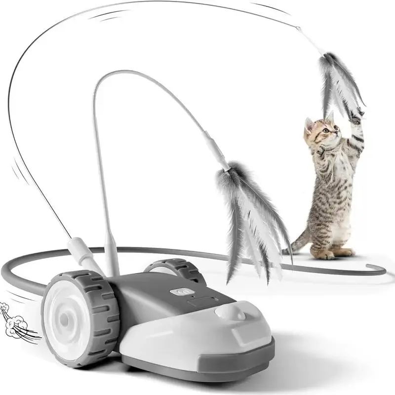 【3 Different Tails & Support DIY: Endless Joy for Indoor Cats】Rich interchangeable feather, ribbon and simulated mouse tails act as auto wire cat toy wand or move like wiggly snake and worm, spark cats' interest to self-play, offer hours of fun to keep them cheerful and energetic. It also supports DIY like hanging a catnip toy to explore more fresh experiences between you and your feline friends.