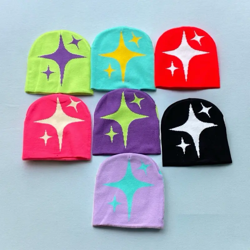 5 Star Beanies, Fall & Winter Outdoor Knitting Warm Hat for Men & Women, Fitted Hat, Daily Clothing Decor