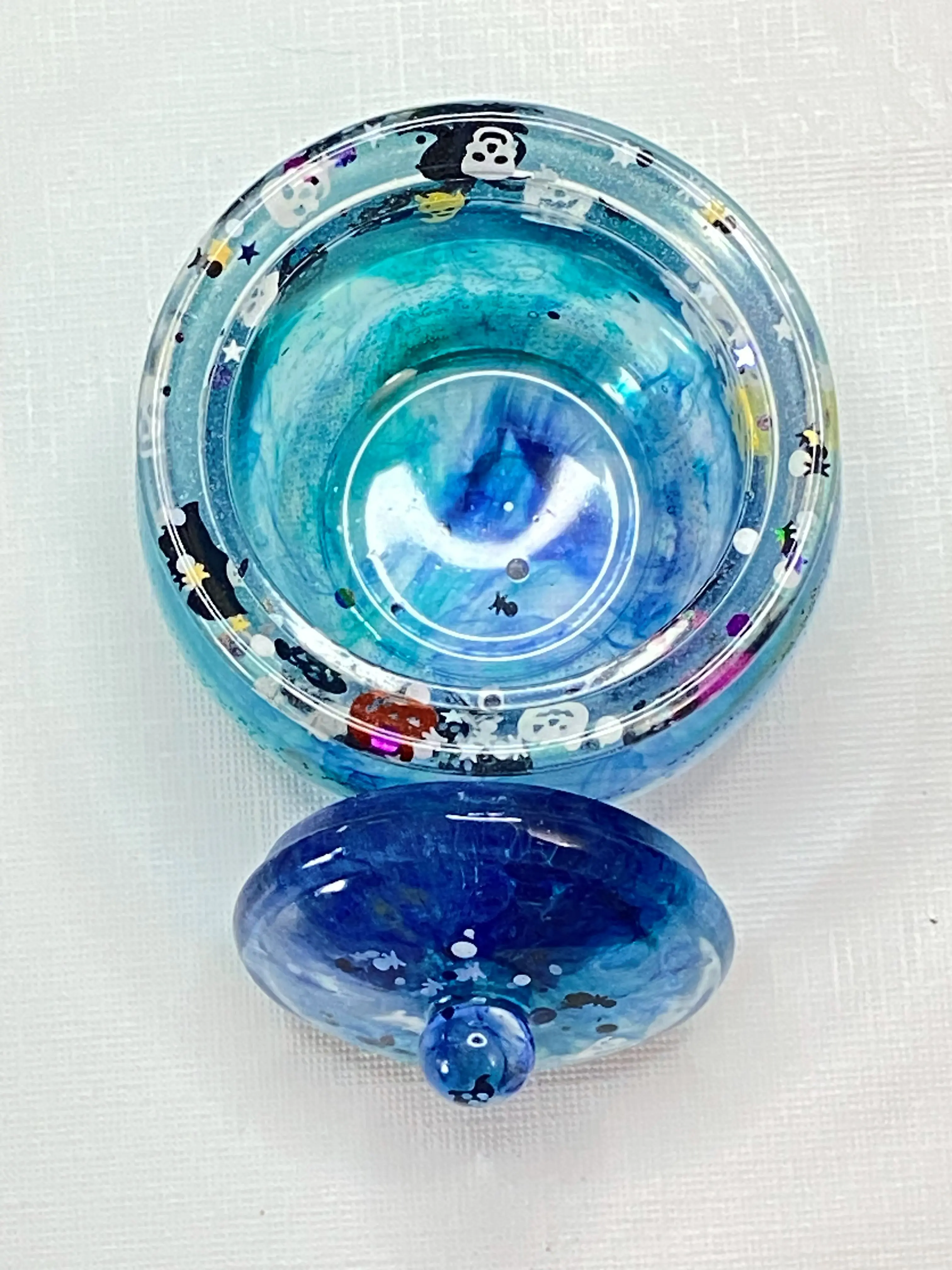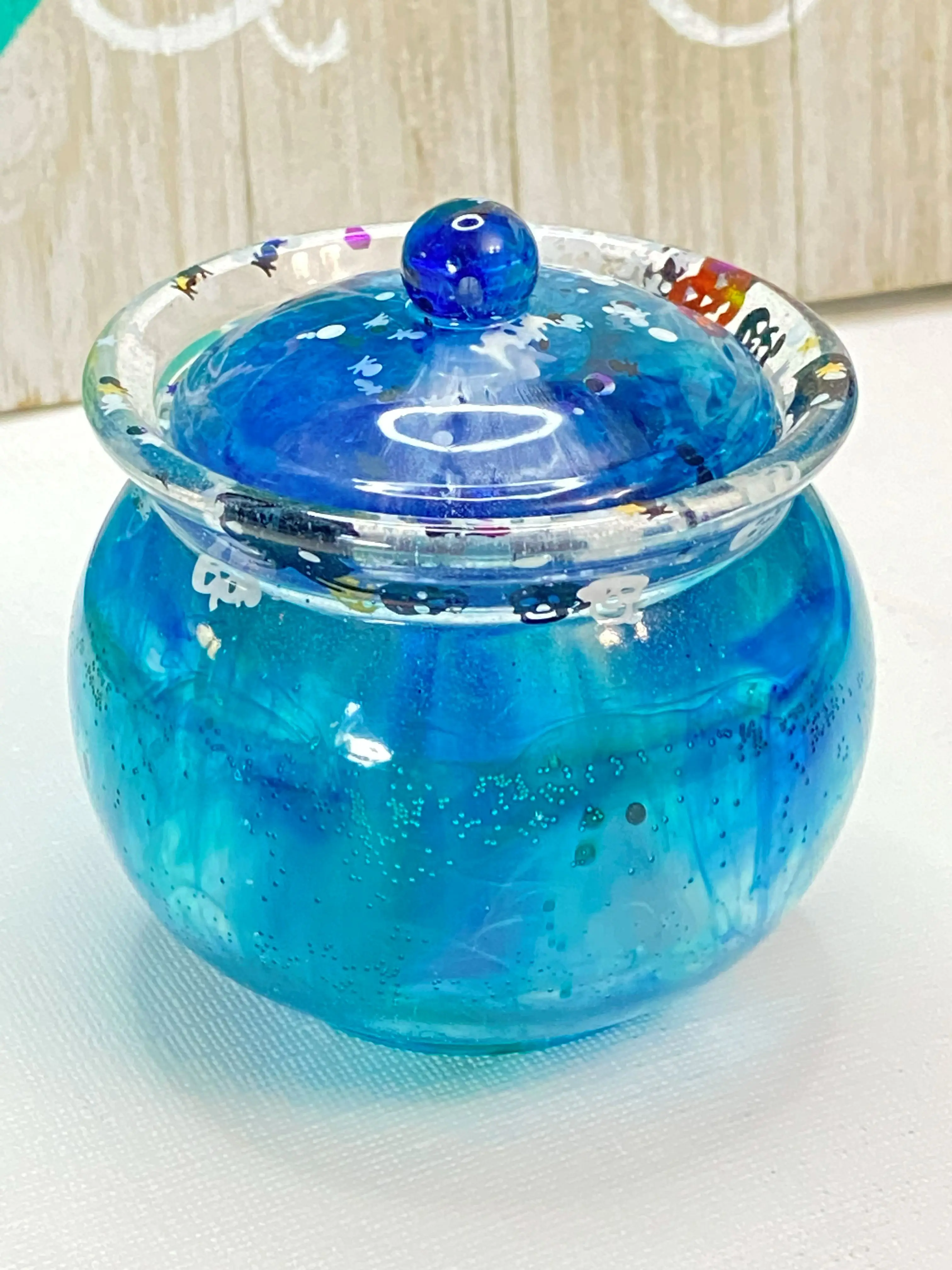 mini Halloween jar with some alcohol ink and Halloween glitter added for detail.