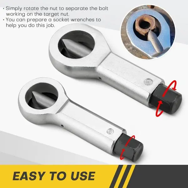 ·Not for Soft Metals: This tool is designed for steel and iron nuts. Use with caution on soft metals like aluminum or brass, as the nut may deform instead of split.