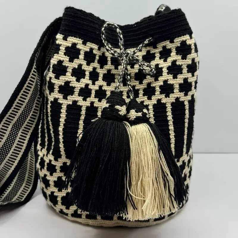Geometric Triangle Pattern Bucket Bag - Black & Gold Design, Stylish & Versatile for Everyday Use