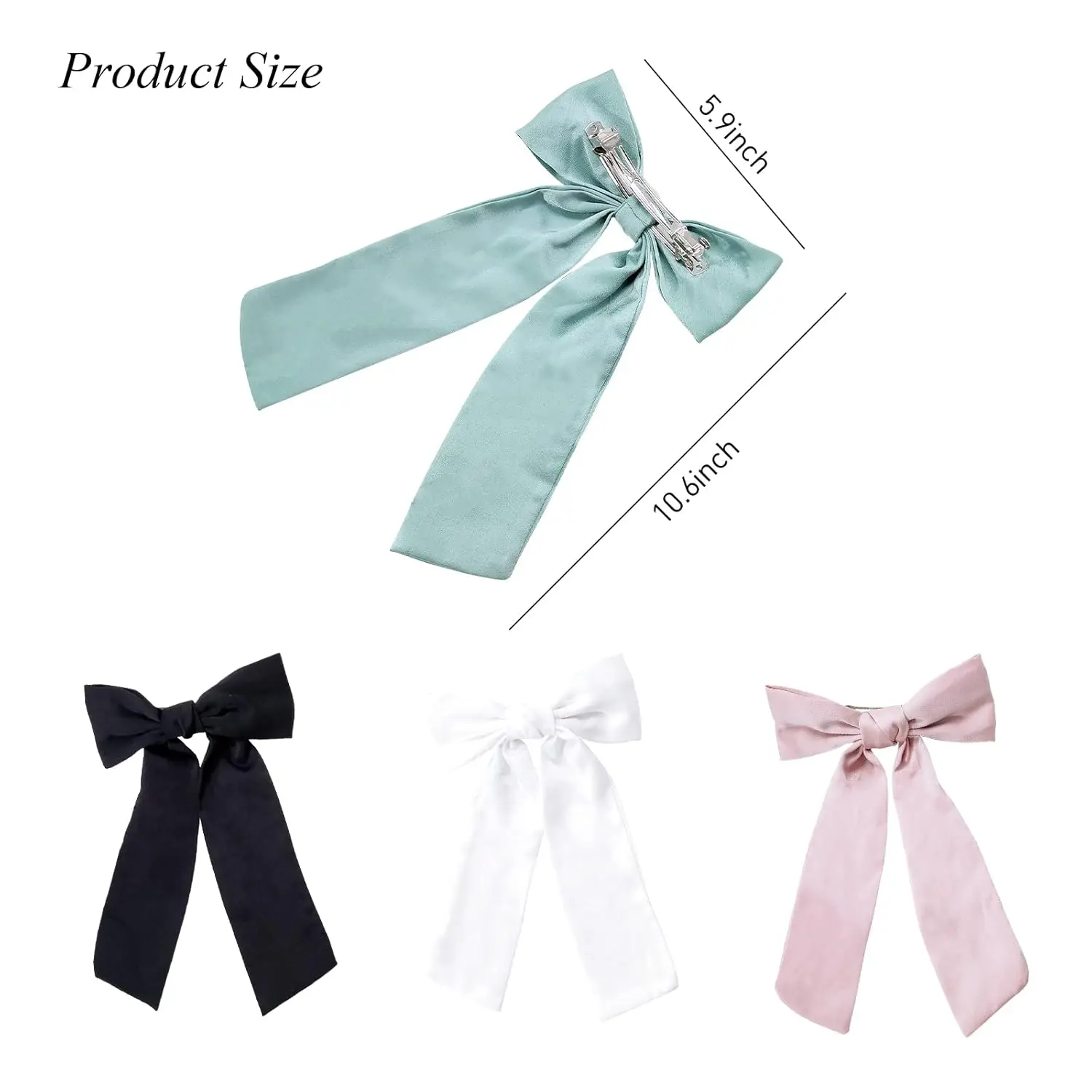 ·【PACKAGE AND SIZE】This Short Ribbon Hair Bows Clip Has 4 Colors: Pink, White, Green, Black. Width is 5.9 Inch, and the Length is 10.6 Inch, can Reach Your Shoulders. Hair Clips Will Make Your Outfit Look Romantic and Elegant, This is Every Girl and Lady's Dream Bow Barrette