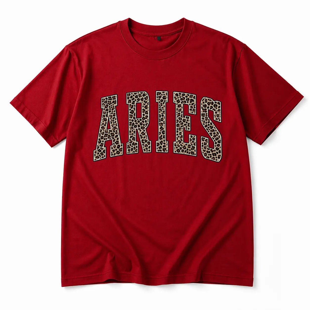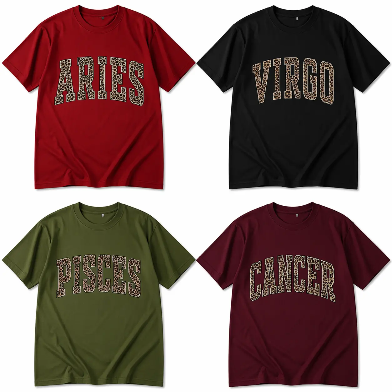 Zodiac Signs Leopard Print T-Shirt Aries Virgo Pisces Cancer Graphic Tee Unisex Astrology Shirt Trendy Animal Print Letter Tee Casual Streetwear Gift for Horoscope Lovers
